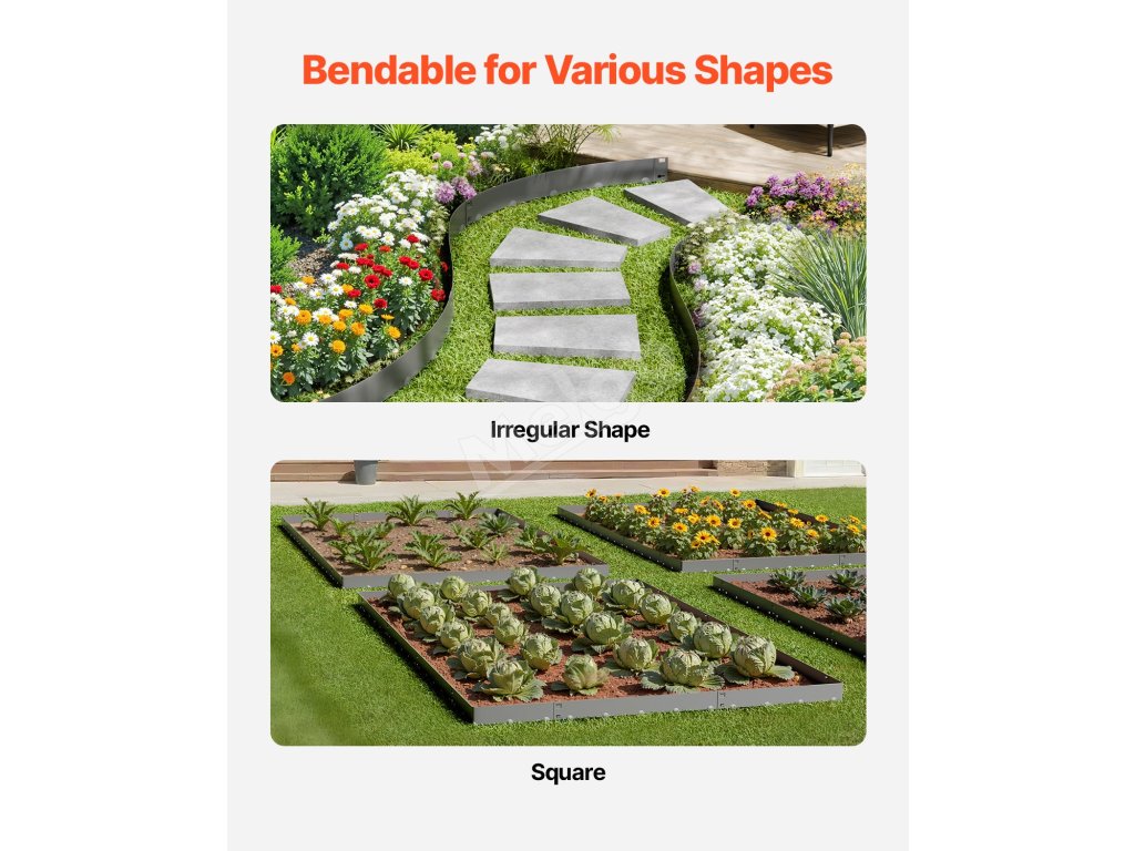 Naše kovové krajinné obruby sú vyrobené z pozinkovanej ocele s práškovým náterom odolným proti korózii a sú konštruované tak, aby odolali podmienkam. Ľahko sa inštaluje a je dostatočne flexibilná na ohýbanie do akéhokoľvek tvaru, takže je ideálna na vytváranie hraníc v záhradách a na okrajoch ciest. Efektívne riešenie na udržanie čistoty vašej krajiny.