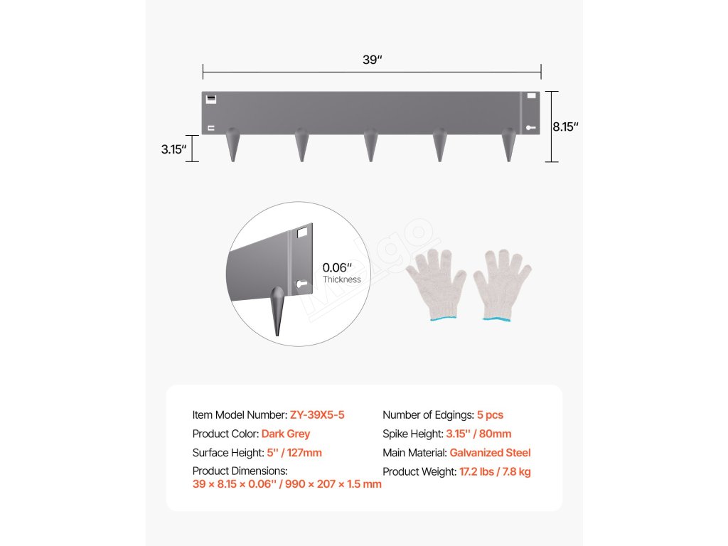Oceľové záhradné obrubníky 5 ks 39×5 in ohybné odolné proti korózii