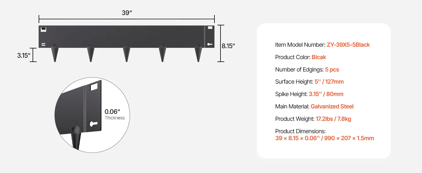 Naše kovové krajinné obruby sú vyrobené z pozinkovanej ocele s práškovým náterom odolným voči korózii a sú konštruované tak, aby odolali podmienkam. Ľahko sa inštaluje a je dostatočne flexibilná na ohýbanie do akéhokoľvek tvaru, takže je ideálna na vytváranie hraníc v záhradách a na okrajoch ciest. Efektívne riešenie na udržanie čistoty vašej krajiny.