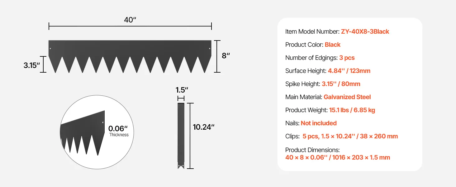 Oceľový obrubník do záhrady 3 ks 40×8 in odolný voči hrdzi ohybný