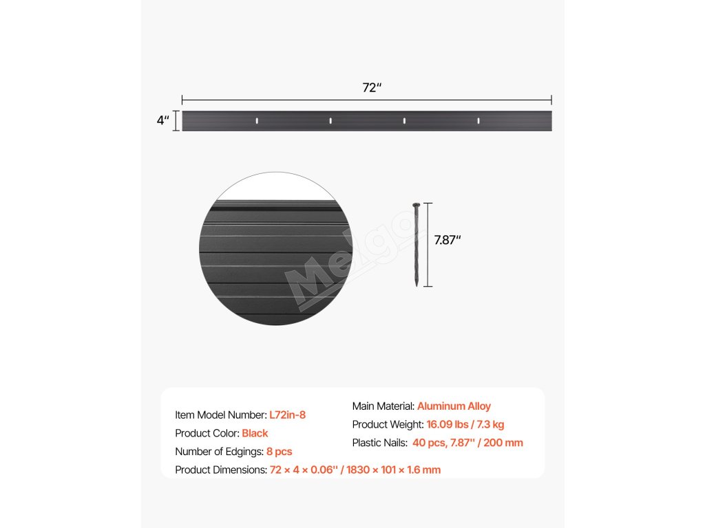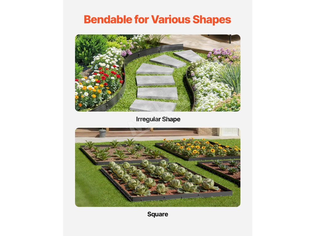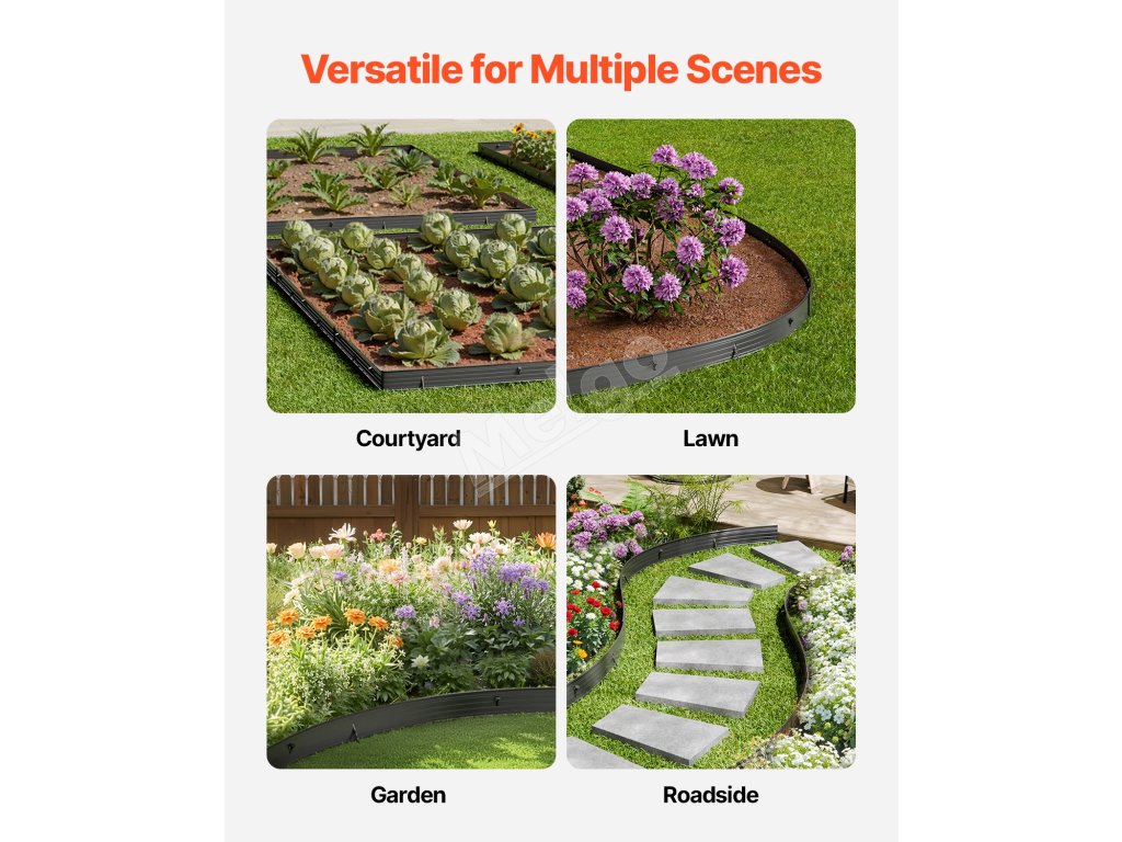 Naše kovové krajinné obruby sú vyrobené z hliníkovej zliatiny s práškovým náterom odolným voči korózii a sú konštruované tak, aby odolali podmienkam. Ľahko sa inštaluje a je dostatočne flexibilná na ohýbanie do akéhokoľvek tvaru, takže je ideálna na vytváranie hraníc v záhradách a na okrajoch ciest. Efektívne riešenie na udržanie čistoty vašej krajiny.
