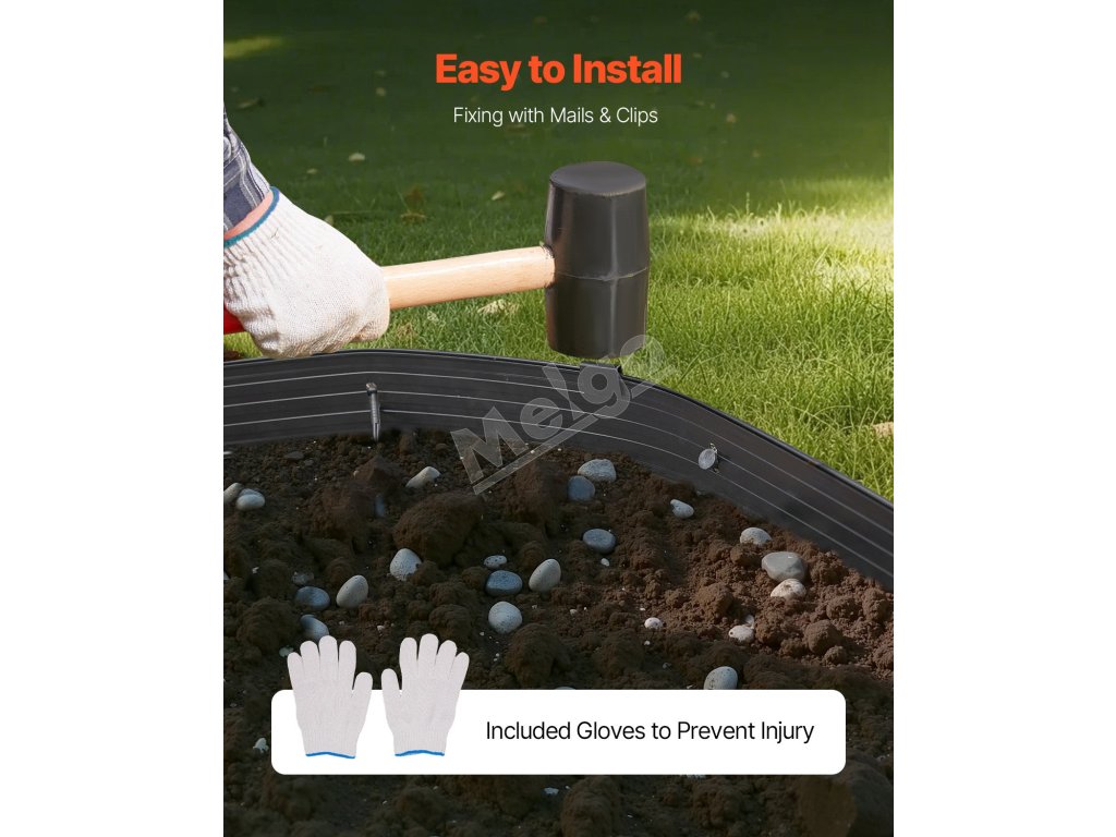 Kovové krajinné obruby sa dodávajú s rukavicami, ktoré zaisťujú bezpečnosť.