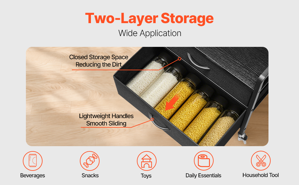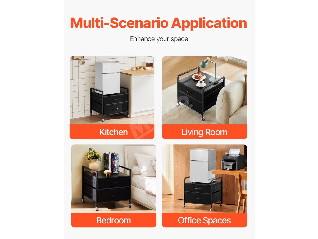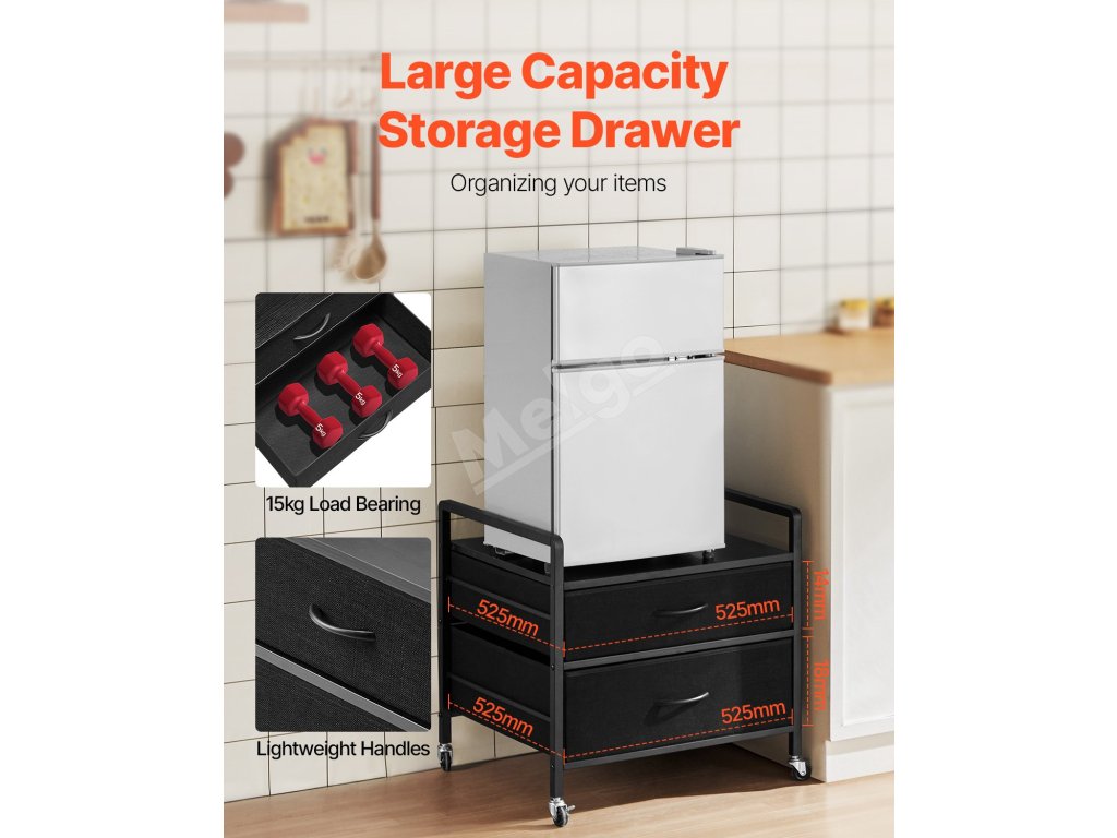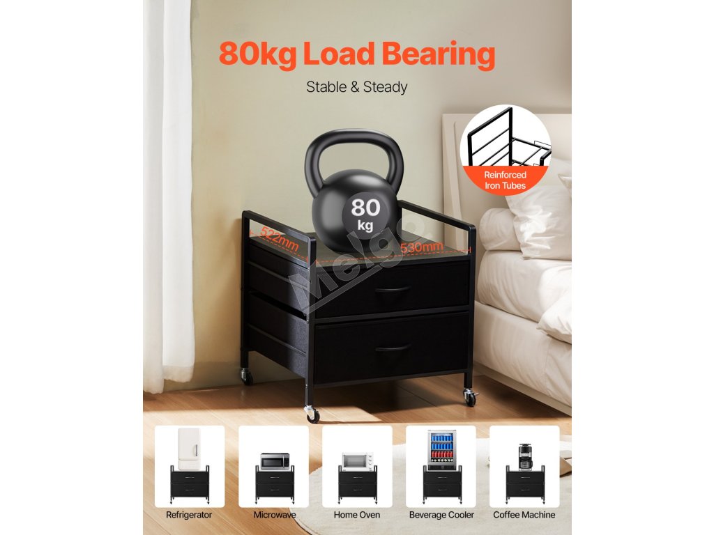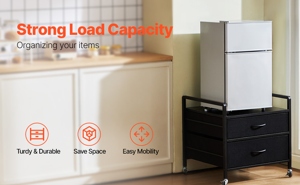 Tento pojazdný regál na mini chladničku je vybavený 2 odolnými, vodotesnými zásuvkami, ktoré poskytujú dostatok úložného priestoru na potraviny, oblečenie, hračky alebo domáce potreby. Udržujte si doma poriadok a zároveň maximalizujte priestor.