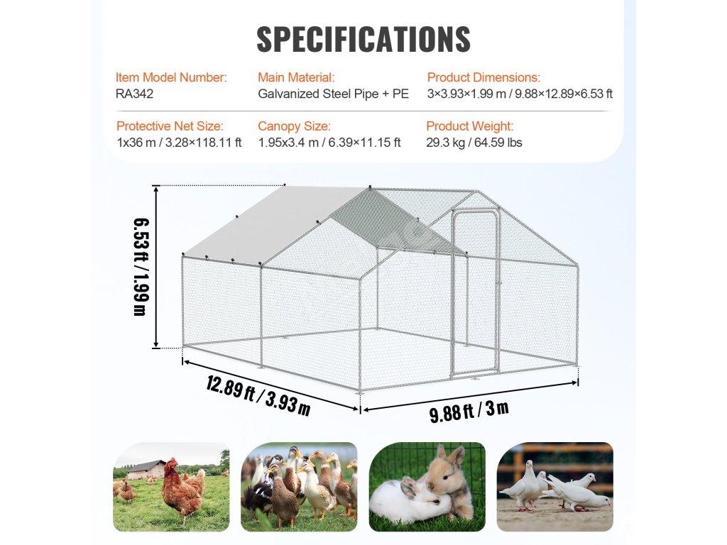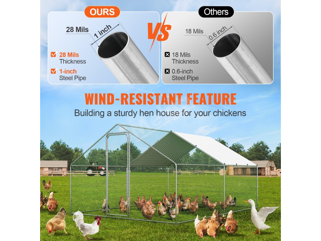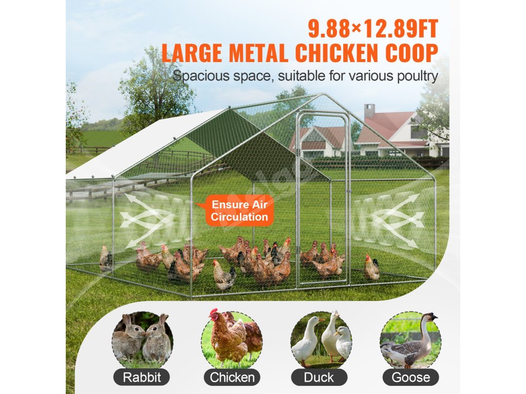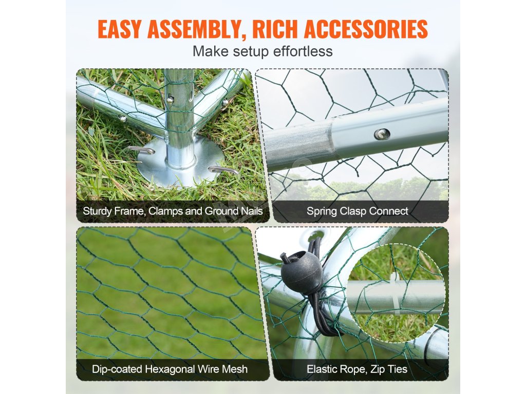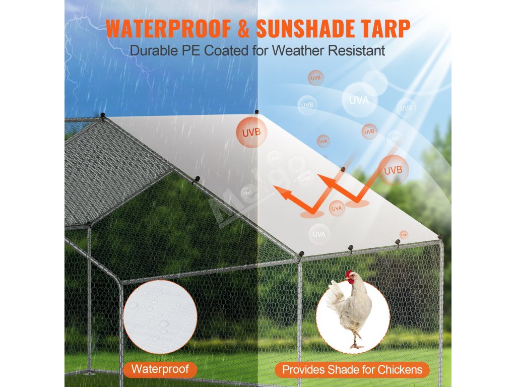 Veľký výbeh pre kurčatá VEVOR je navrhnutý so štvorstranným vetraním na zníženie množenia baktérií a zápachu. Nezabudnite v zime odstrániť nánosy snehu, aby ste pre svoju hydinu vytvorili svieži a zdravý životný priestor.
