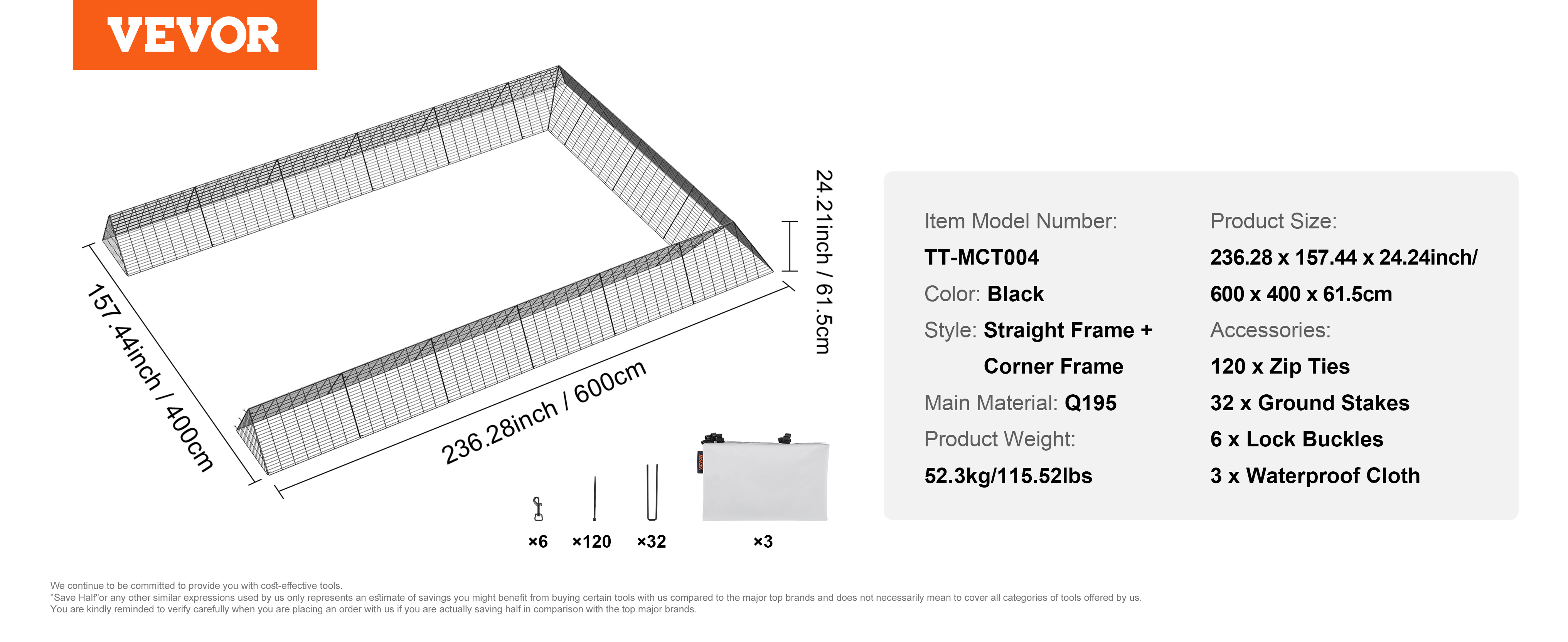 So šírkou 157,48" a výškou 24,2" ponúka náš prenosný tunel pre kurčatá o 17 % viac priestoru ako bežné tunely, čo hydine umožňuje voľný pohyb. Chráni vegetáciu pod ním a ľahko sa premiestňuje, čím sa prispôsobí rôznym terénom.