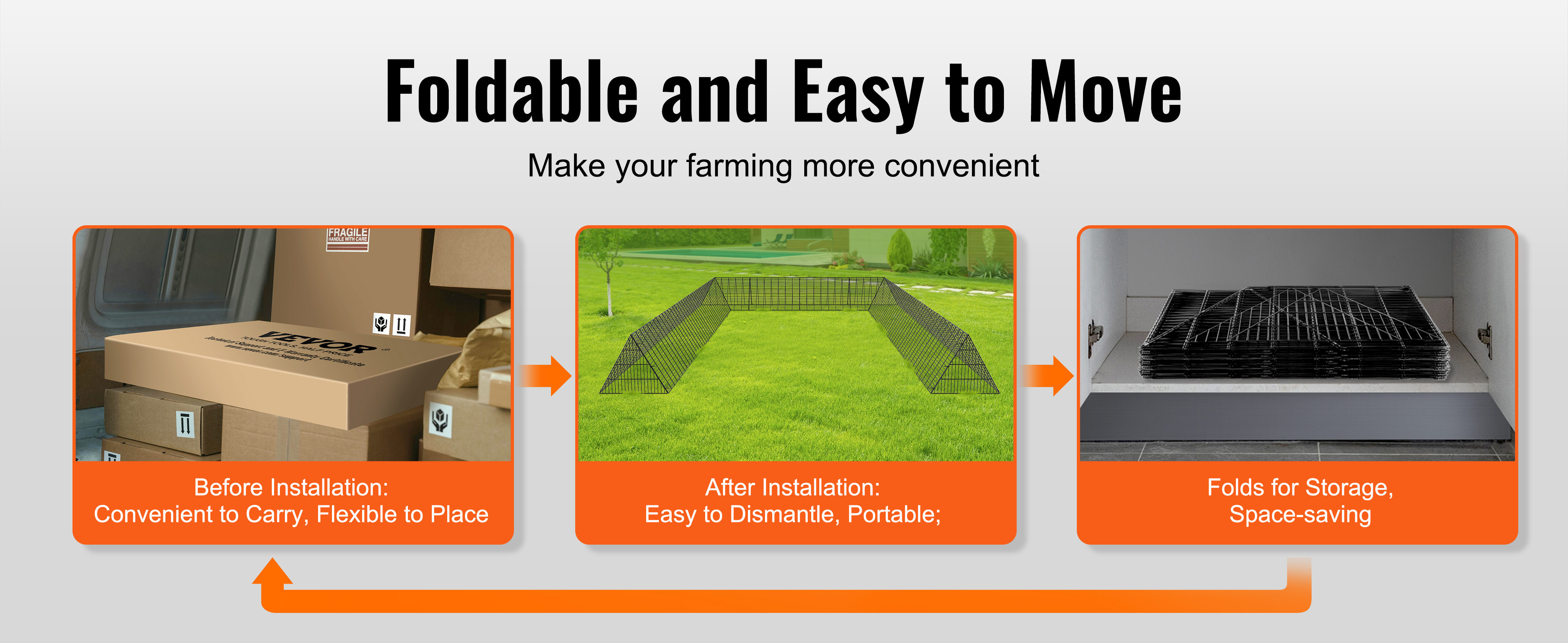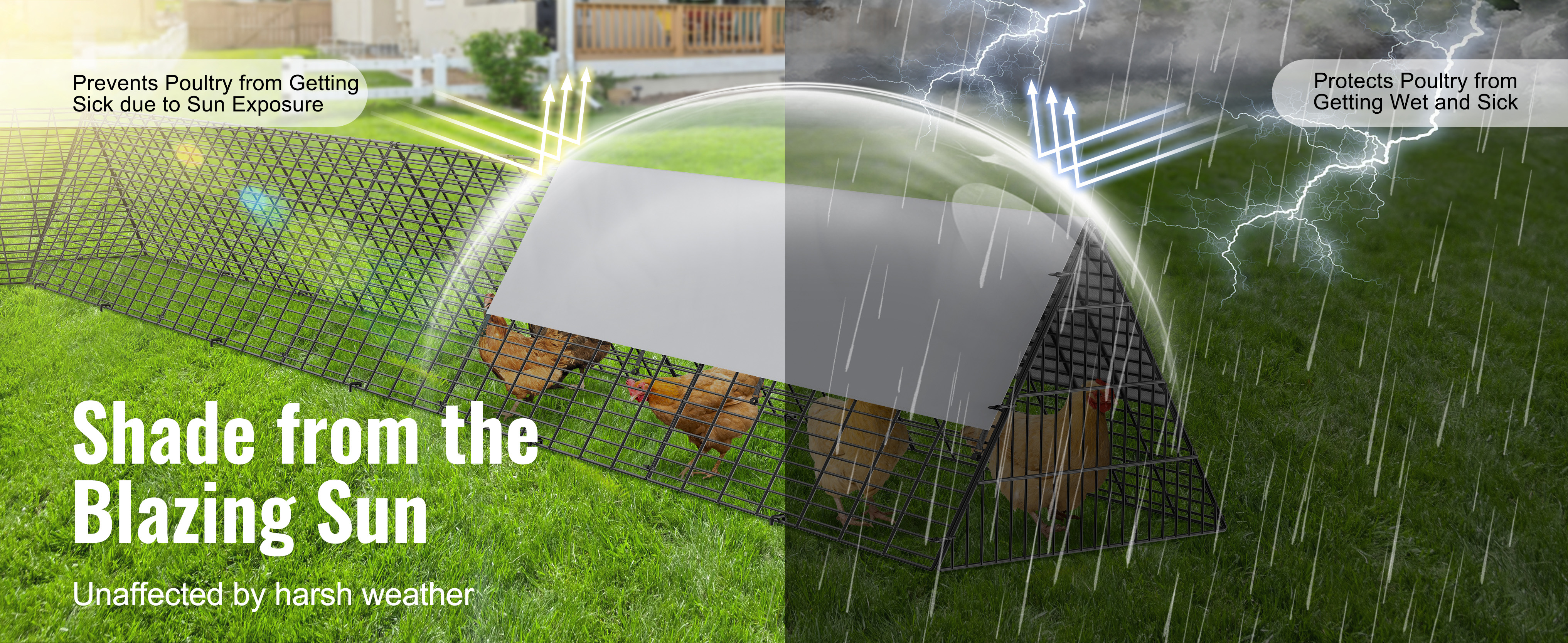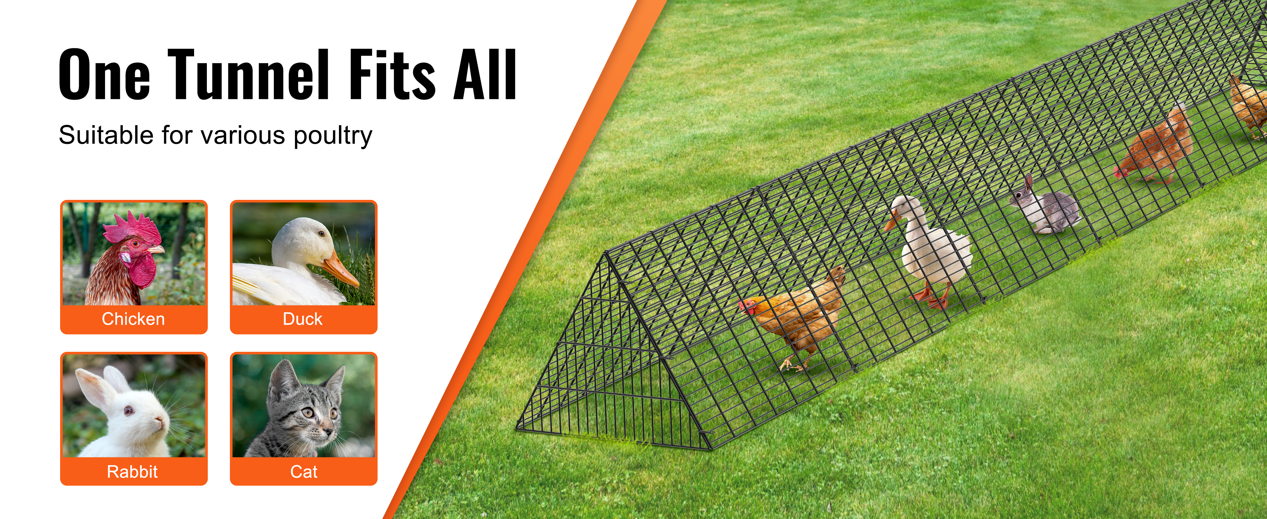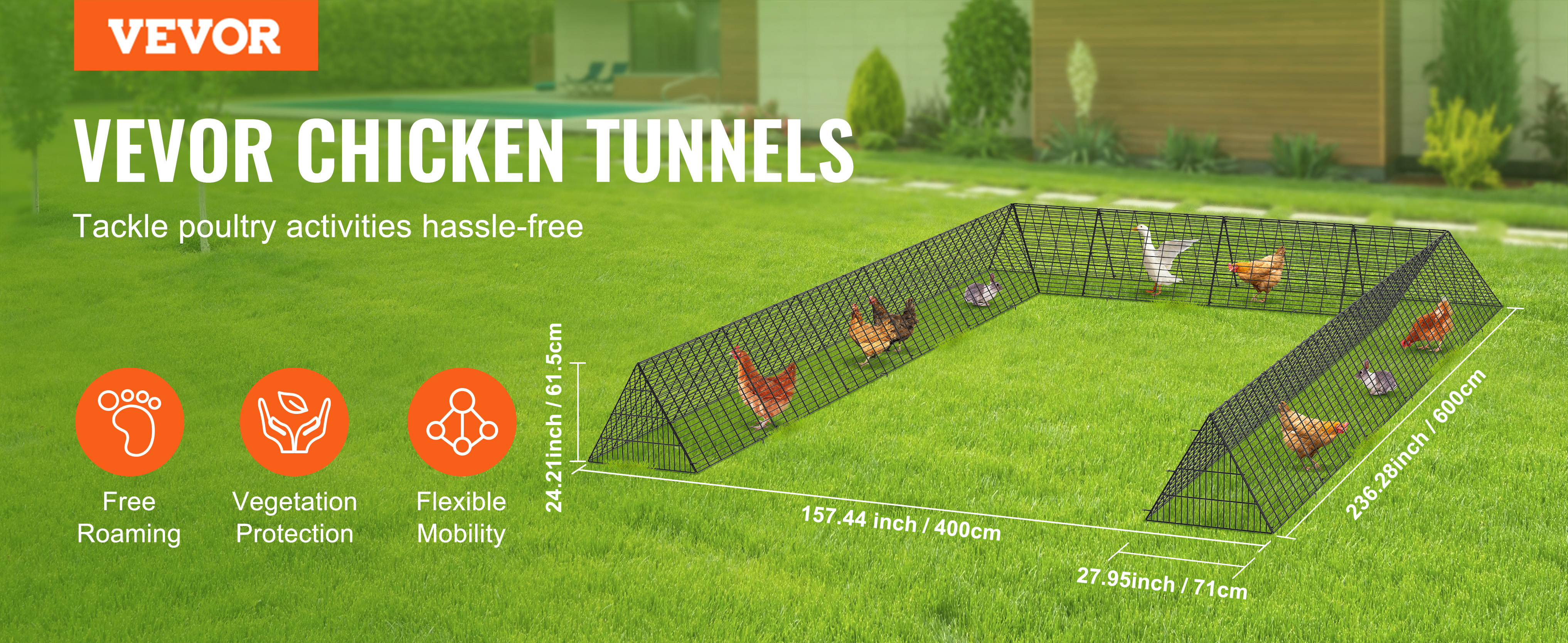 Výbehy pre kurčatá VEVOR na dvor vyhovujú potrebám rôznej hydiny vrátane kurčiat, kačíc, králikov a mačiek a umožňujú im voľný pohyb v rámci tunela.