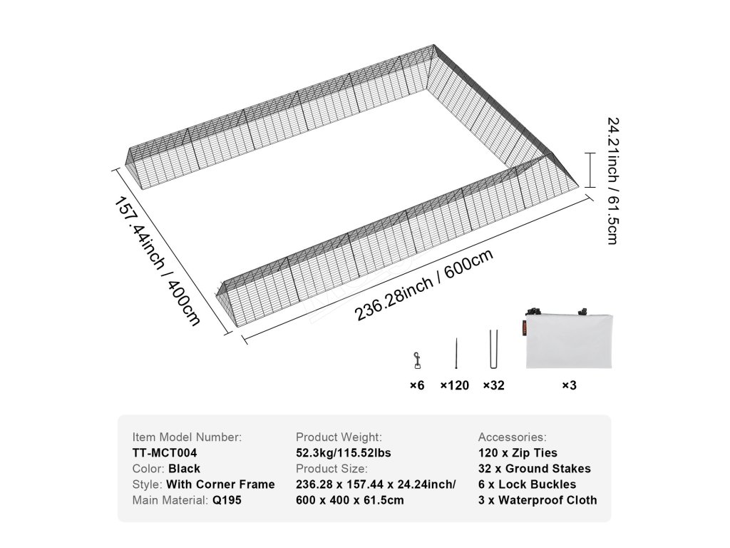 So šírkou 157,48" a výškou 24,2" ponúka náš prenosný tunel pre kurčatá o 17 % viac priestoru ako bežné tunely, čo hydine umožňuje voľný pohyb. Chráni vegetáciu pod ním a ľahko sa premiestňuje, čím sa prispôsobí rôznym terénom.