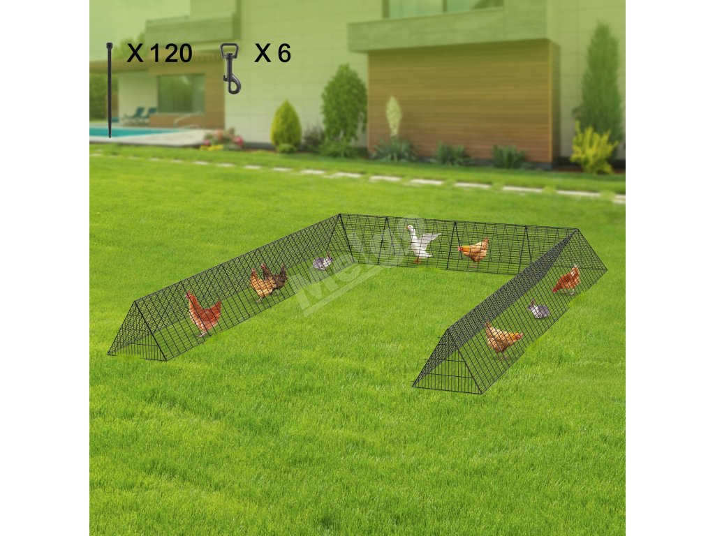 Husté a vystužené mobilné výbehy pre kurčatá zvyšujú stabilitu a zabraňujú vstupu predátorov, ako sú psy, kojoti, jastraby a líšky, čím zabezpečujú bezpečnosť vašej hydiny.