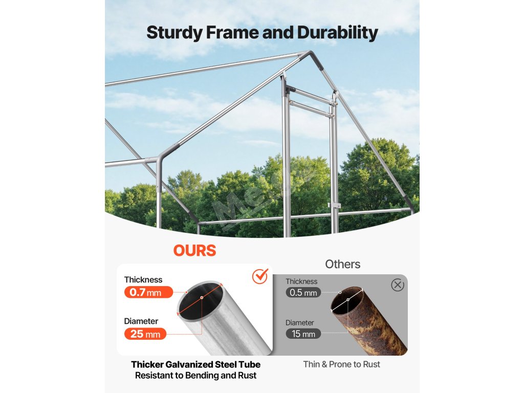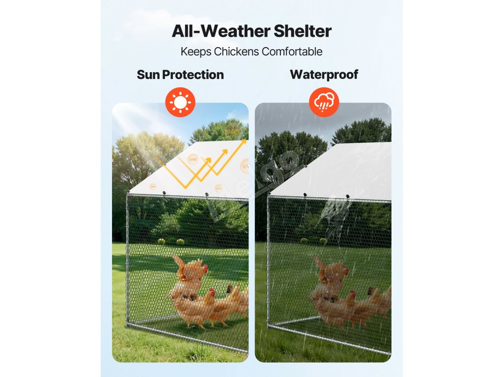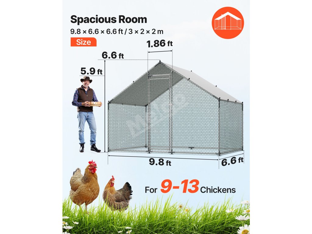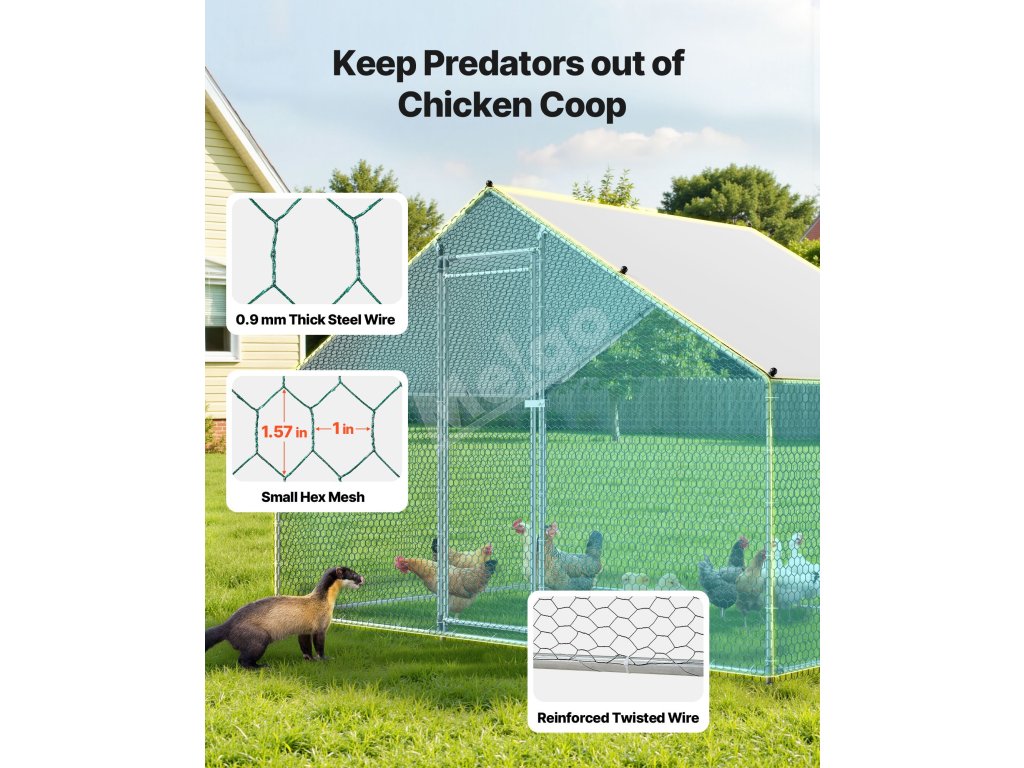 Ak chováte kurčatá vo svojej záhrade, je potrebné vybrať si pevný kurník, aby vaši operení priatelia žili šťastne, zdravo a bezpečne. Pre každého, kto chová kurčatá vo svojej záhrade, je dôležité mať na pamäti, koľko priestoru potrebujú. Bezpečný kurník s pevnou strechou im to práve poskytuje. Kovový kurník VEVOR je špičková verzia, ktorá zohľadňuje potreby moderných chovateľov kurčiat, pokiaľ ide o bezpečnosť, priestor a pohodlie. S veľkým výbehom pre kurčatá ponúka kurník VEVOR obrovský priestor pre vaše stádo, kde sa môže voľne pohybovať, znášať vajcia a odpočívať.