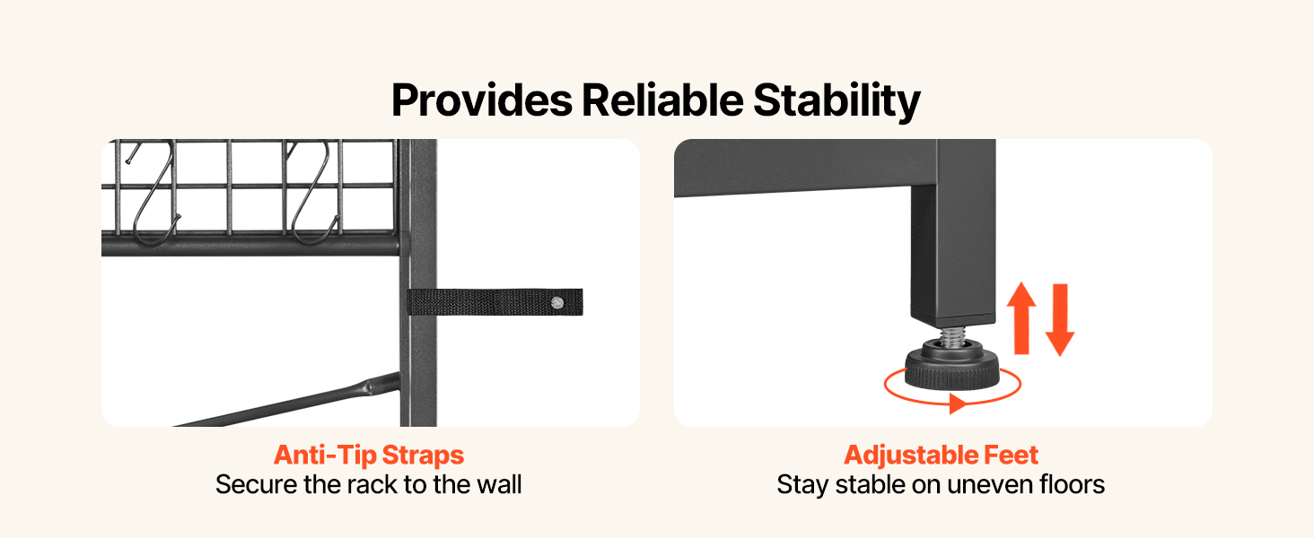 Nástenné protisklzové pásky a nastaviteľné nožičky tohto vešiaka na kabáty a topánky spoločne zvyšujú stabilitu a pomáhajú udržiavať bezpečný a pohodlný domáci priestor pre celú rodinu.