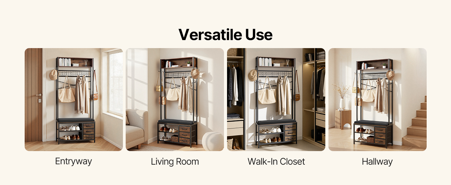 Vešiak na topánky a kabáty udrží často používané oblečenie, topánky, tašky a každodenné predmety na jednom mieste pre rýchly prístup, čím pomáha znížiť neporiadok a udržiavať uprataný obytný priestor.