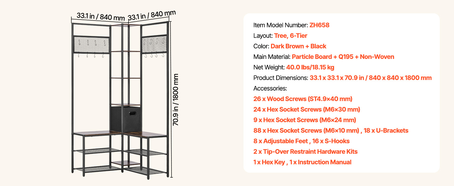 Kombinuje vešiaky na kabáty, botníky a úložnú priehradku v jednom priestorovo úspornom dizajne, ktorý poskytuje efektívne vertikálne úložisko, aby sa znížila neporiadok a uvoľnil sa viac priestoru vo vašej domácnosti.