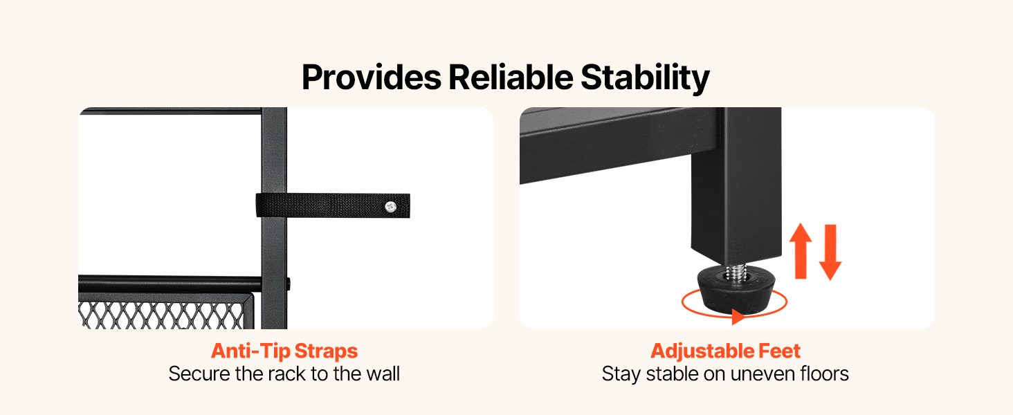 Nástenné protisklzové popruhy a nastaviteľné nožičky spoločne zvyšujú stabilitu a pomáhajú udržiavať bezpečný a pohodlný domáci priestor pre celú rodinu.