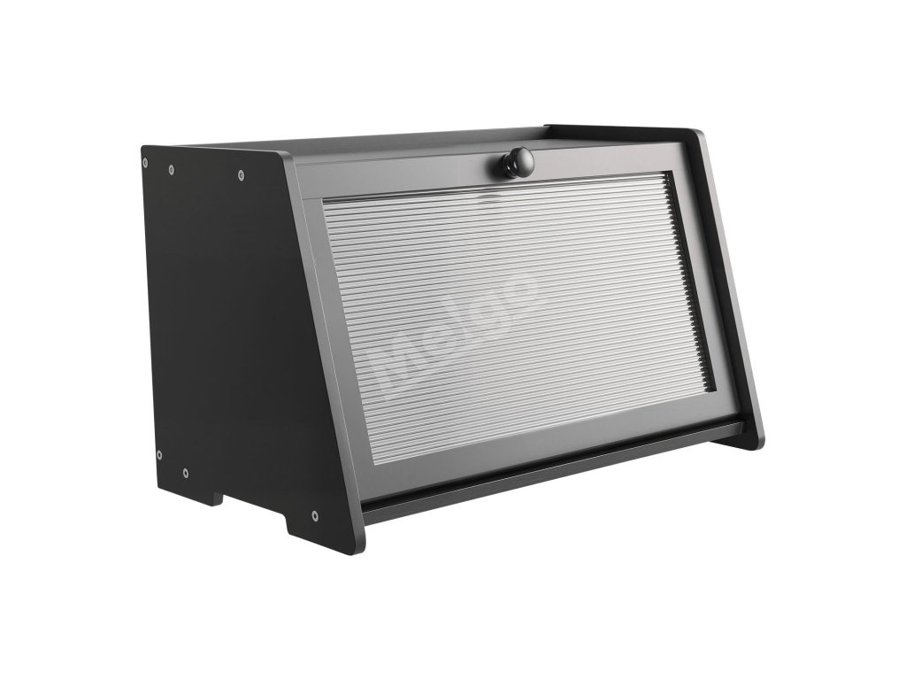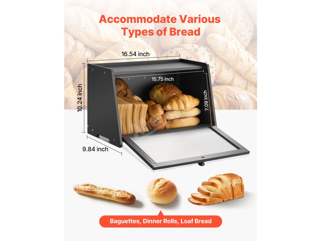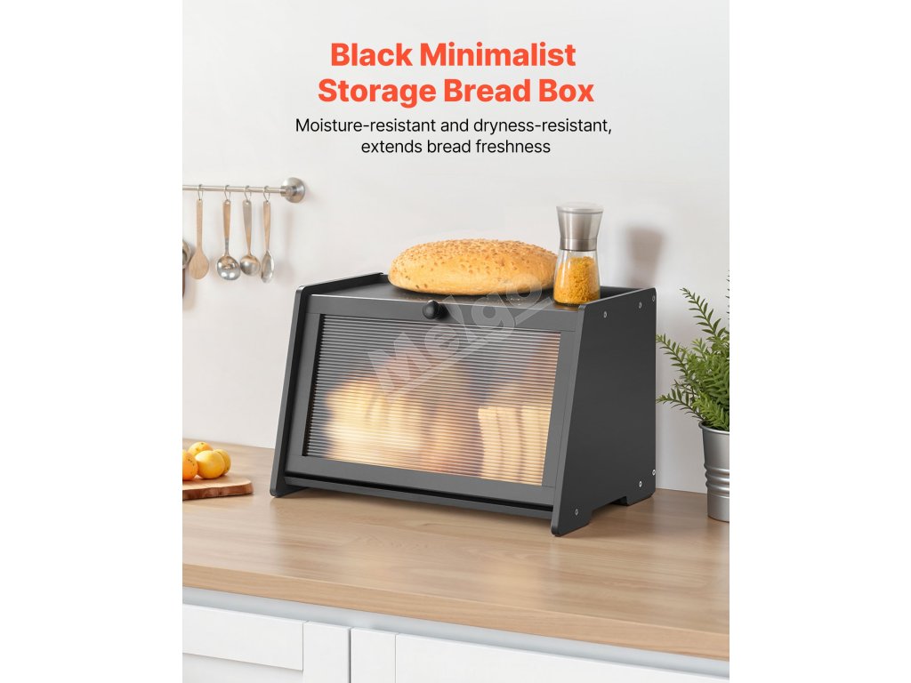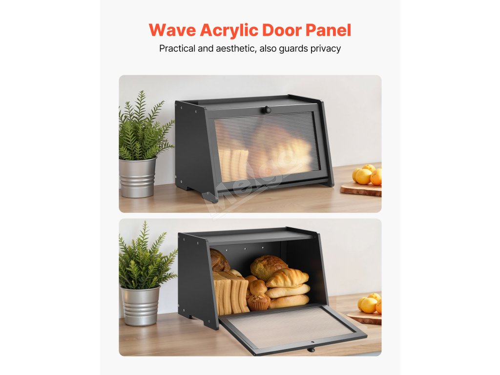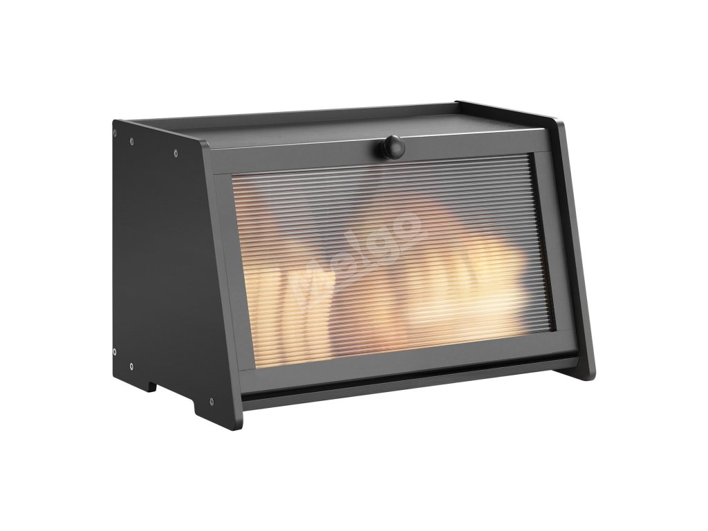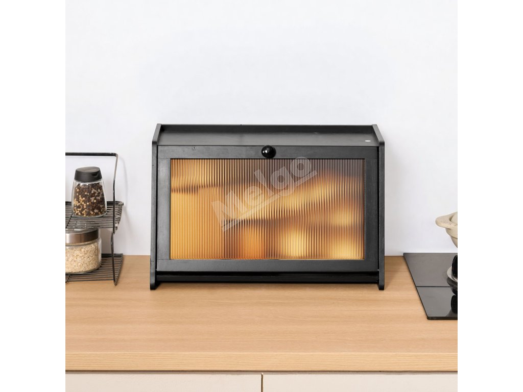 Chlebník bambusový, veľká kapacita, akrylové vlnité dvierka, čierny
