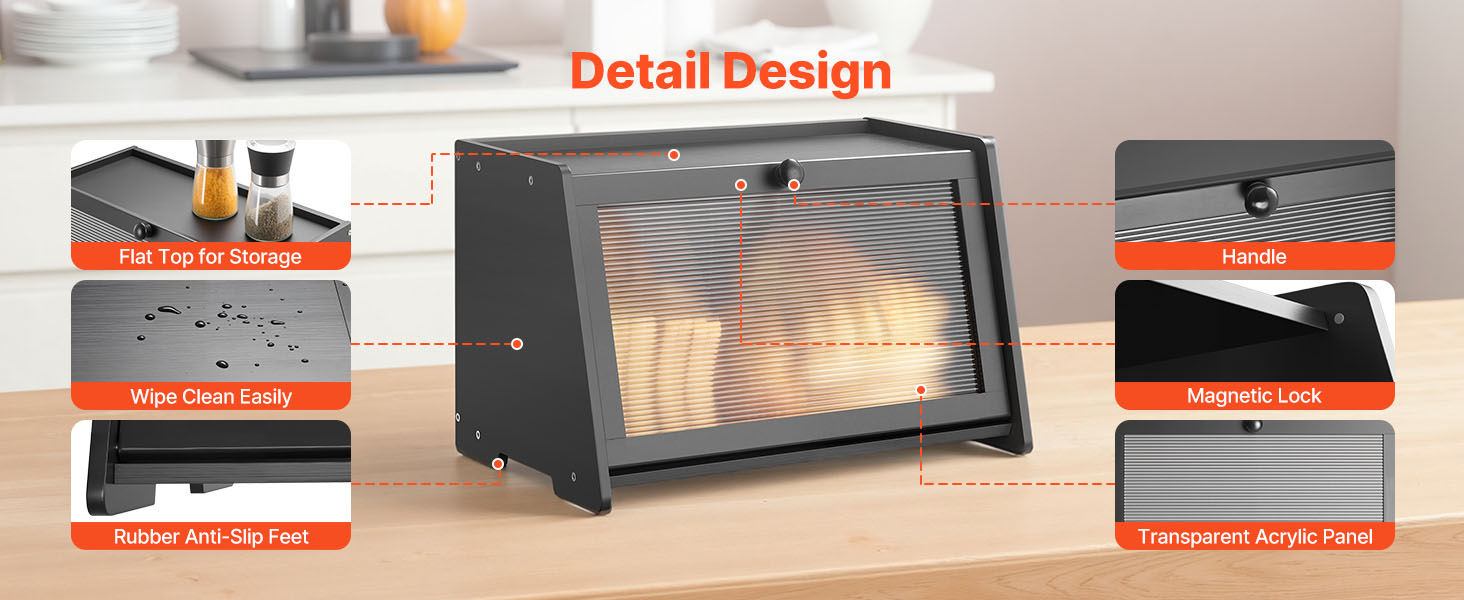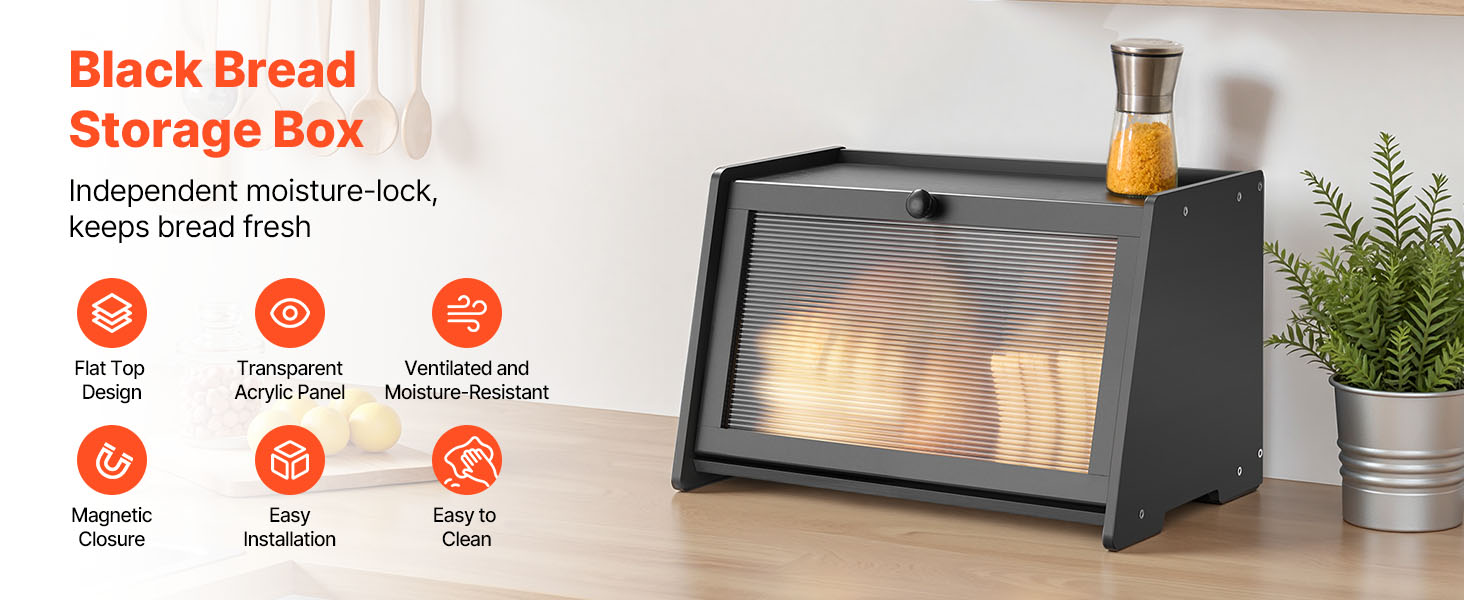 Náš farmársky chlebník má elegantné línie s otvoreným vnútorným priestorom bez priečok, vďaka ktorému sú položky ľahko viditeľné a prístupné, čo výrazne zlepšuje každodennú použiteľnosť.