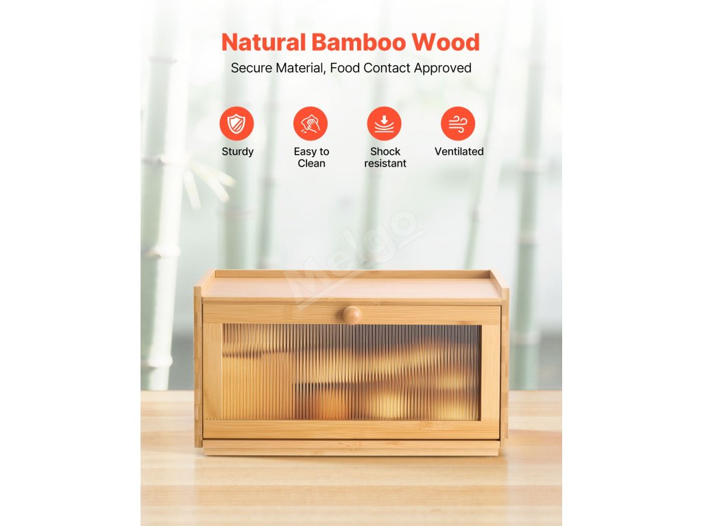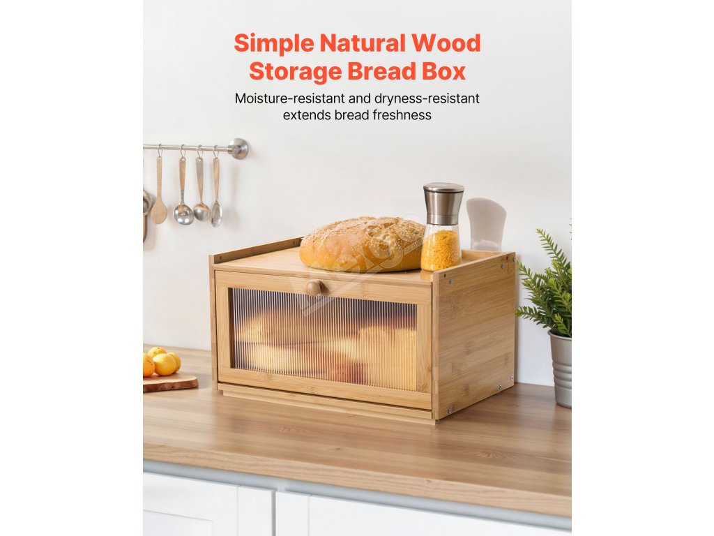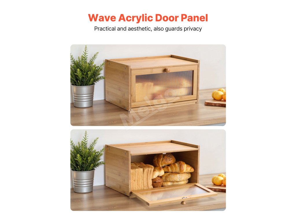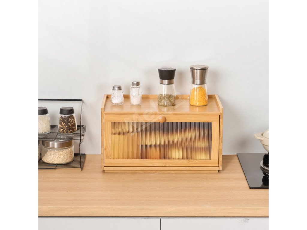 Chlebník bambusový veľká kapacita s akrylovými vlnitými dvierkami