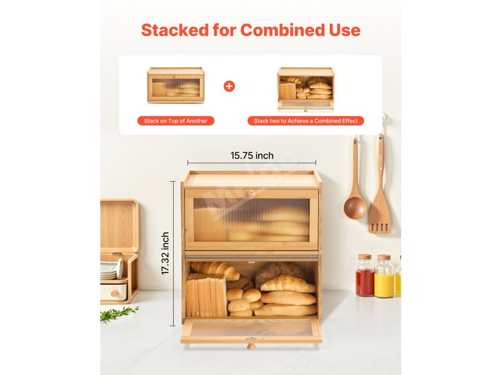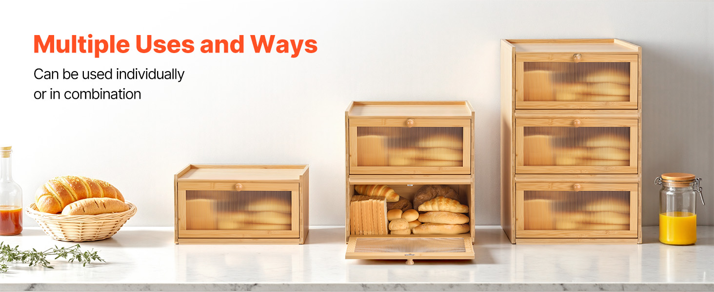 Bambusovú nádobu na chlieb možno stohovať, čím sa zmení na veľkokapacitné úložné riešenie, ktoré sa prispôsobí vašim potrebám a ponúka flexibilné uloženie rôznych predmetov.