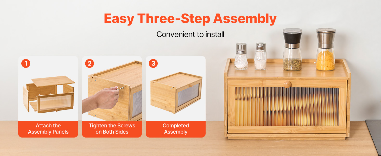 Drevený zásobník na chlieb jednoducho utrite vlhkou handričkou na jednoduché čistenie. Inštalácia je jednoduchá, čo vám ušetrí čas a námahu a zároveň si môžete užívať jeho pohodlné používanie.