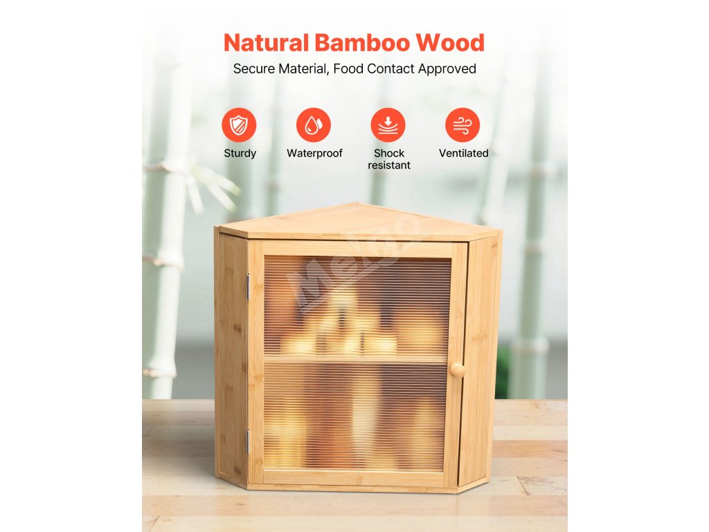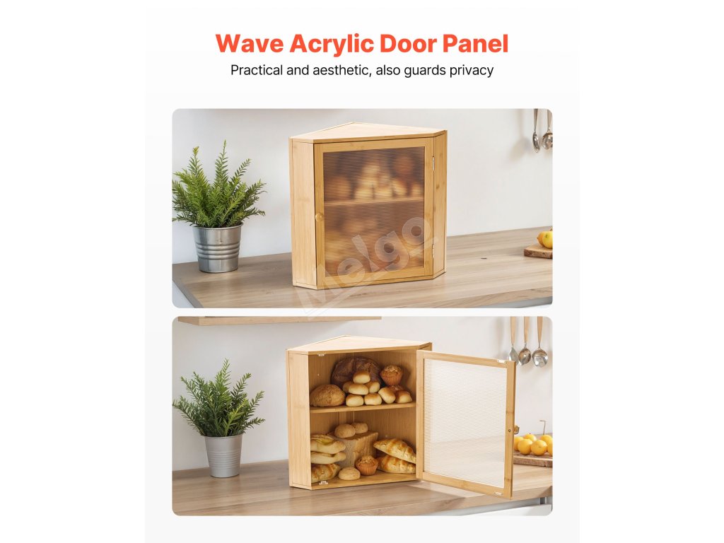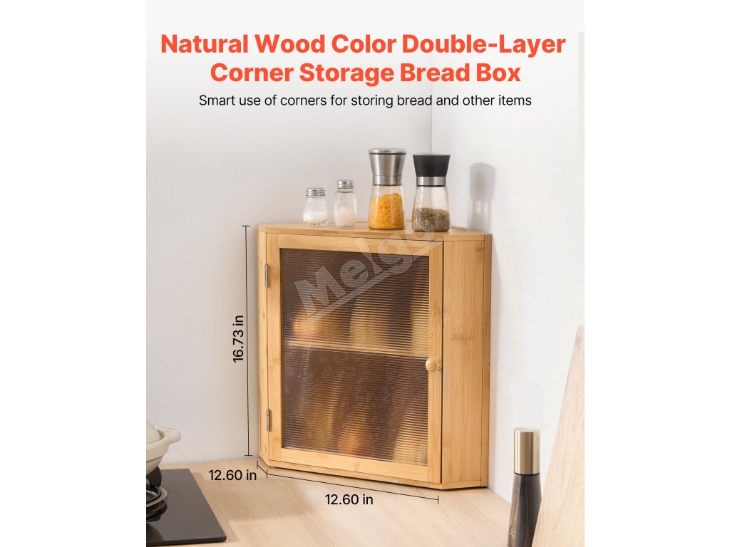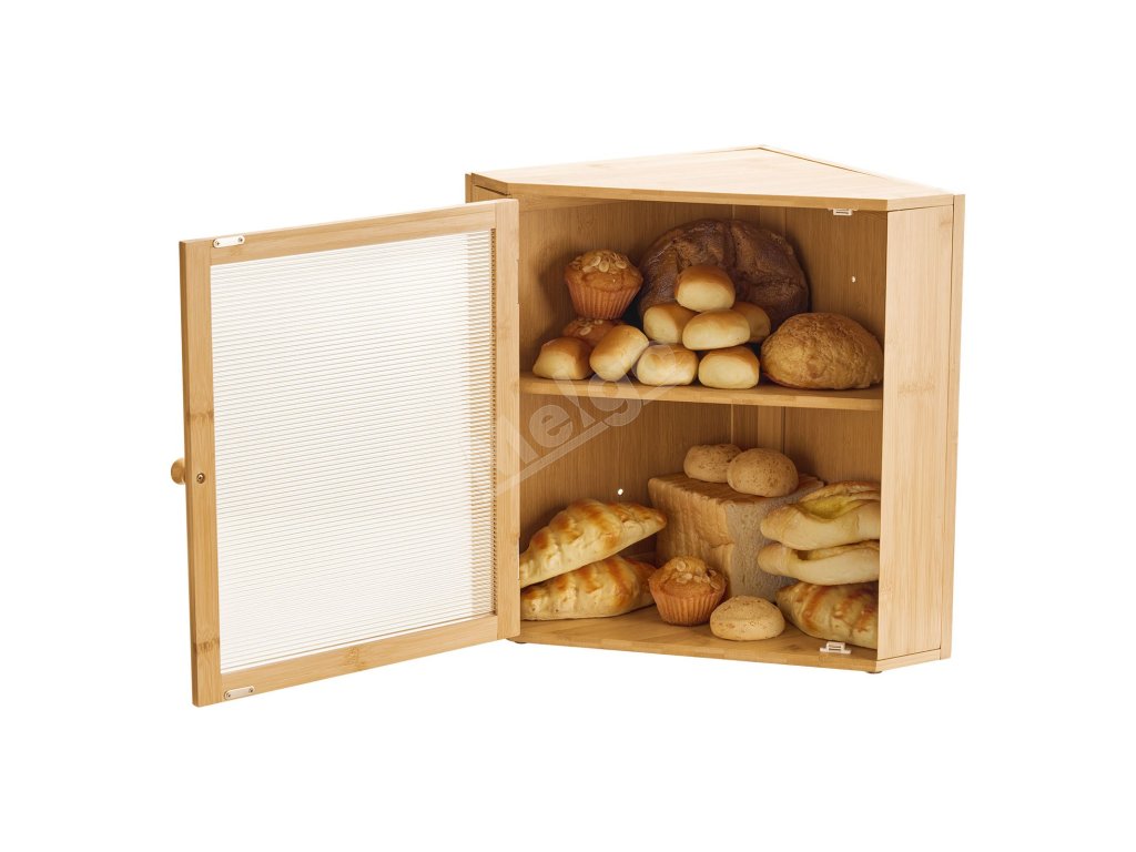 Rohový chlebník bambusový, dvojvrstvový, s akrylovými dvierkami