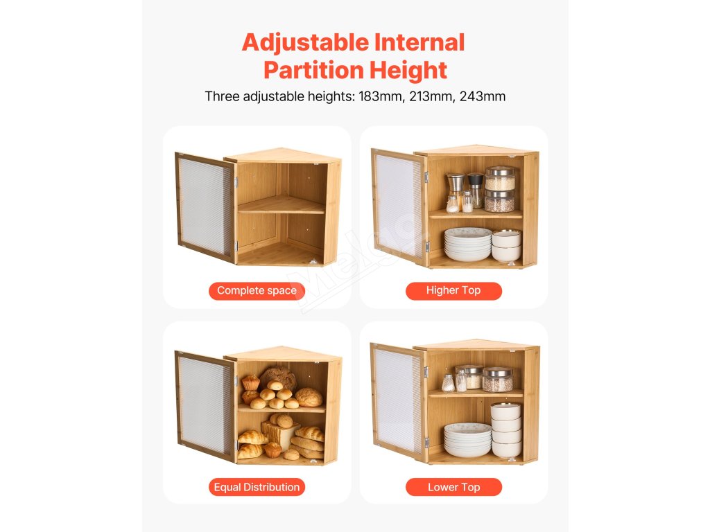 Náš farmársky box na chlieb je určený pre rohy kuchyne, maximalizuje efektívnosť usporiadania a rieši problémy s priestorom v malých kuchyniach.