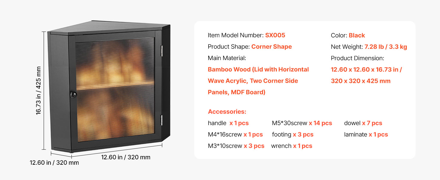 | Rozmery výrobku | 12.60x12,60x16,73 palca / 320x320x425 mm |