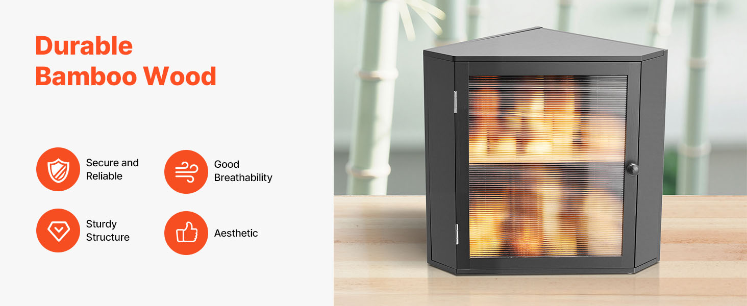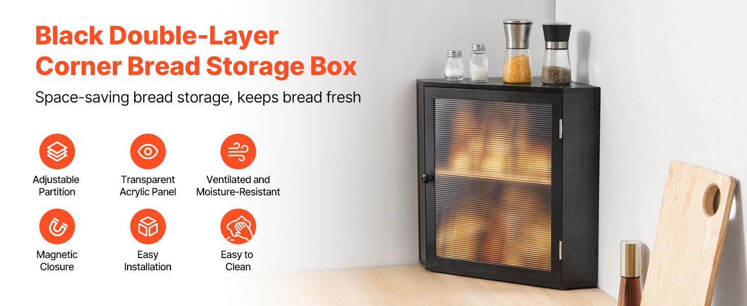 Rohový chlebník z bambusu, dvojvrstvový, akrylové vlnité dvere, čierny