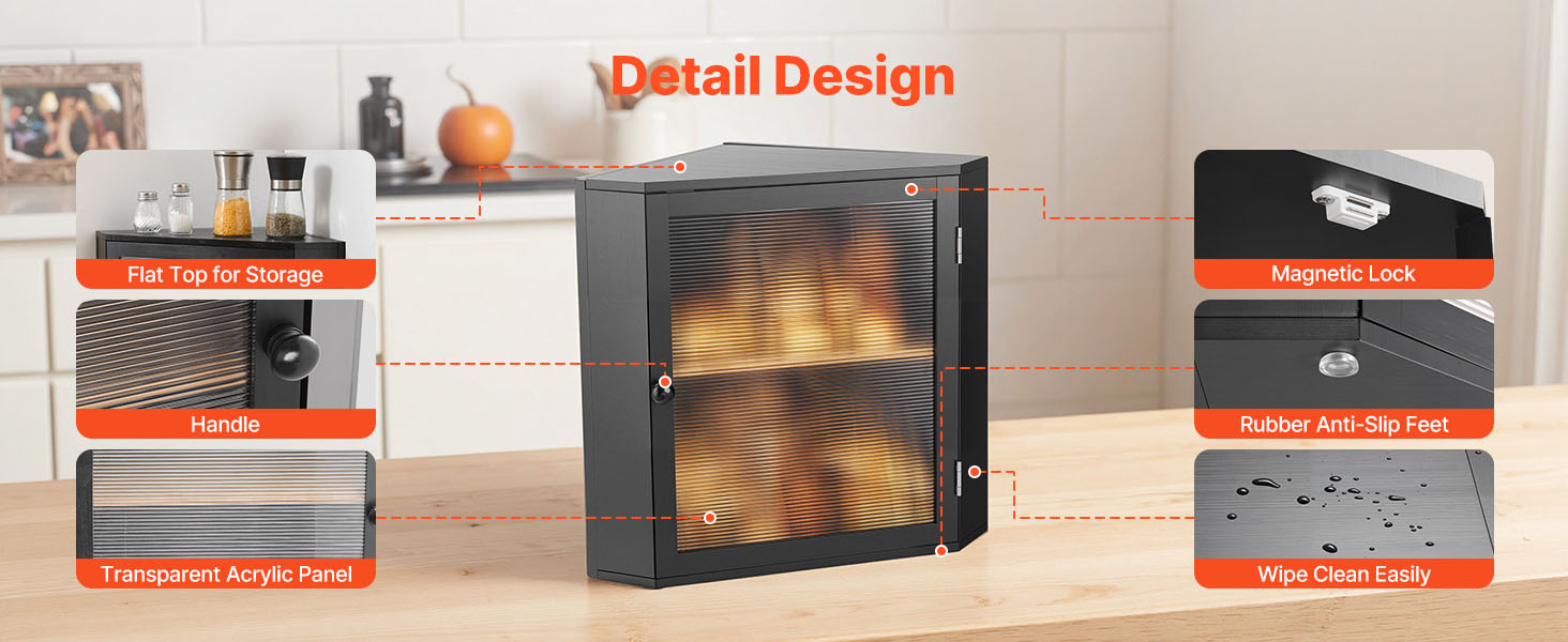 Náš farmársky box na chlieb je určený pre rohy kuchyne, maximalizuje efektívnosť usporiadania a rieši problémy s priestorom v malých kuchyniach.