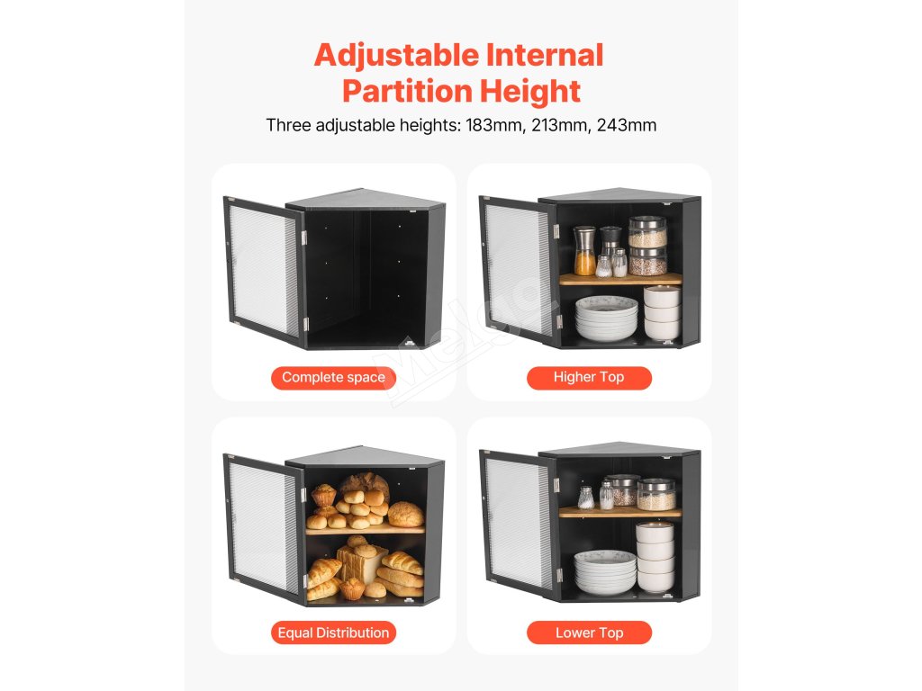 Náš farmársky box na chlieb je určený pre rohy kuchyne, maximalizuje efektívnosť usporiadania a rieši problémy s priestorom v malých kuchyniach.