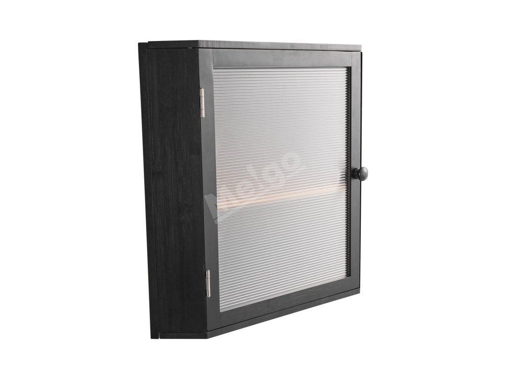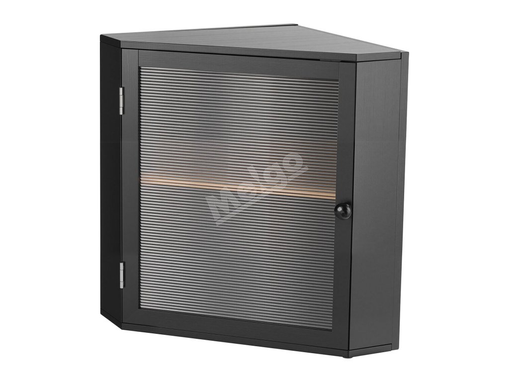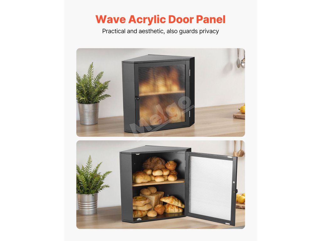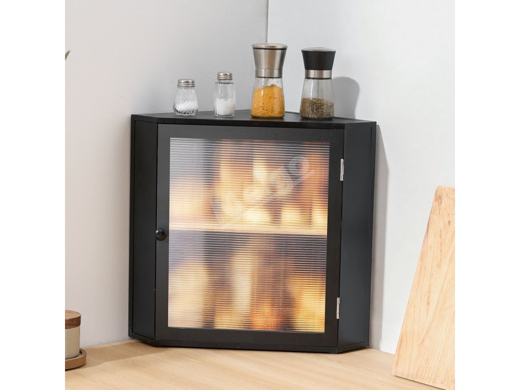 Rohový chlebník z bambusu, dvojvrstvový, akrylové vlnité dvere, čierny