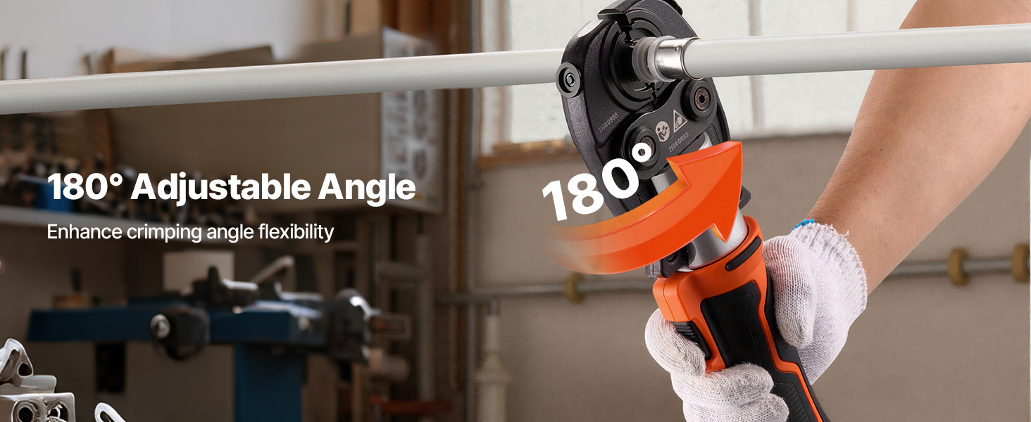 Lisovaciu hlavu môžete ľahko otáčať až o 180°, aby sa zmestila do úzkych alebo šikmých priestorov. Dosiahnite flexibilné polohovanie a presné lisovanie aj v ťažko prístupných oblastiach.