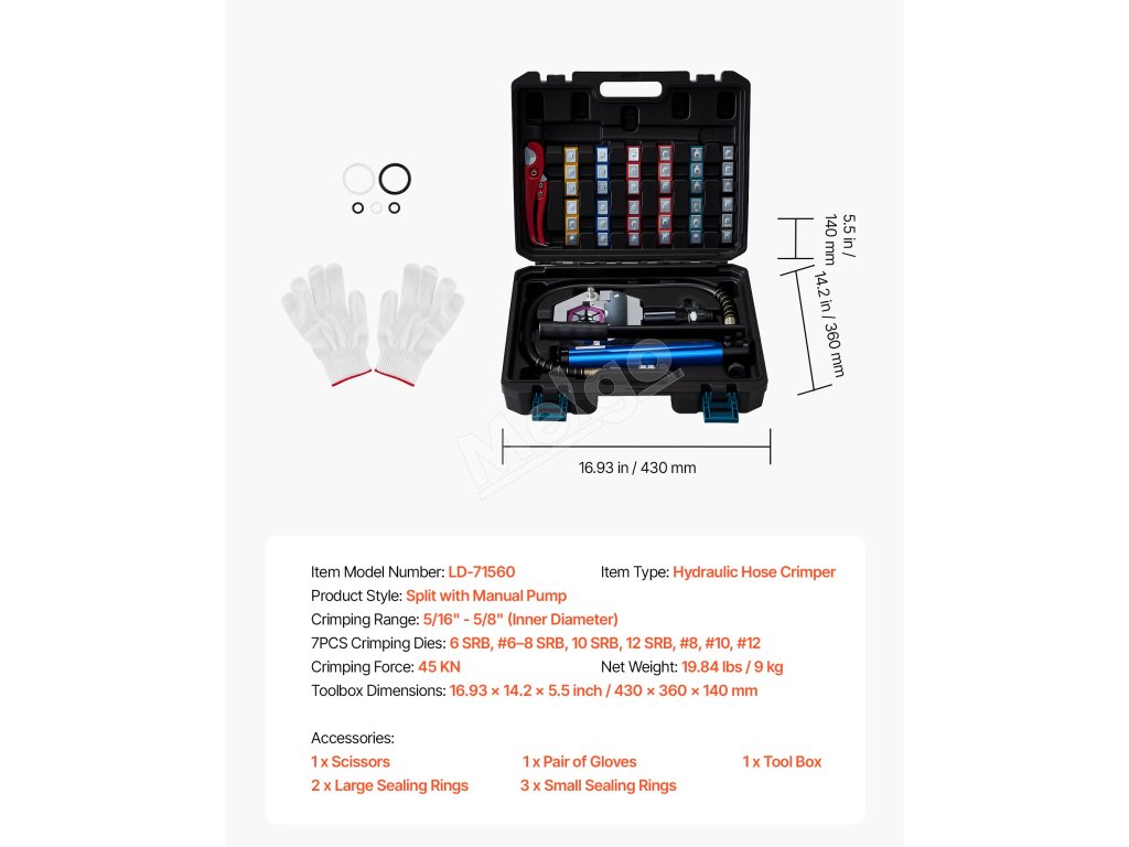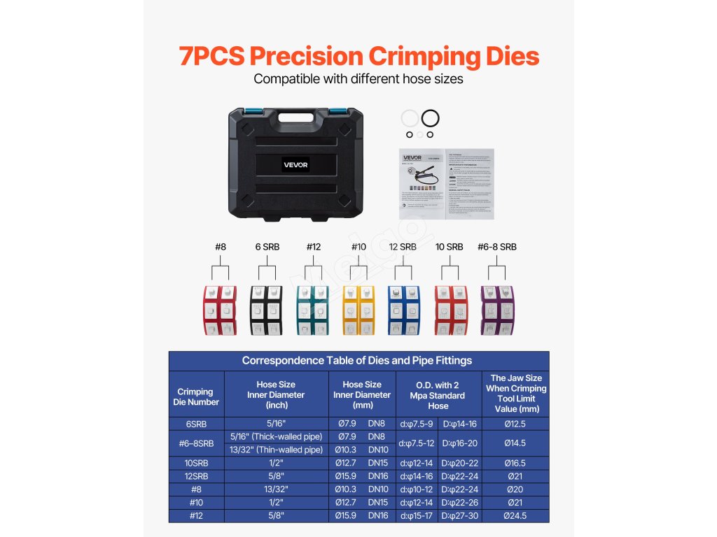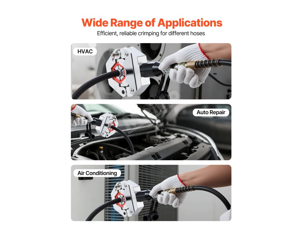 Táto hydraulická súprava na lisovanie hadíc klimatizácie poskytuje silné, presné a netesné lisovanie hadíc rôznych veľkostí. Vďaka 7 lisovacím matriciam, presnému hydraulickému systému a robustnému telu je ideálna na opravy automobilov, inštaláciu HVAC a údržbu klimatizácie.