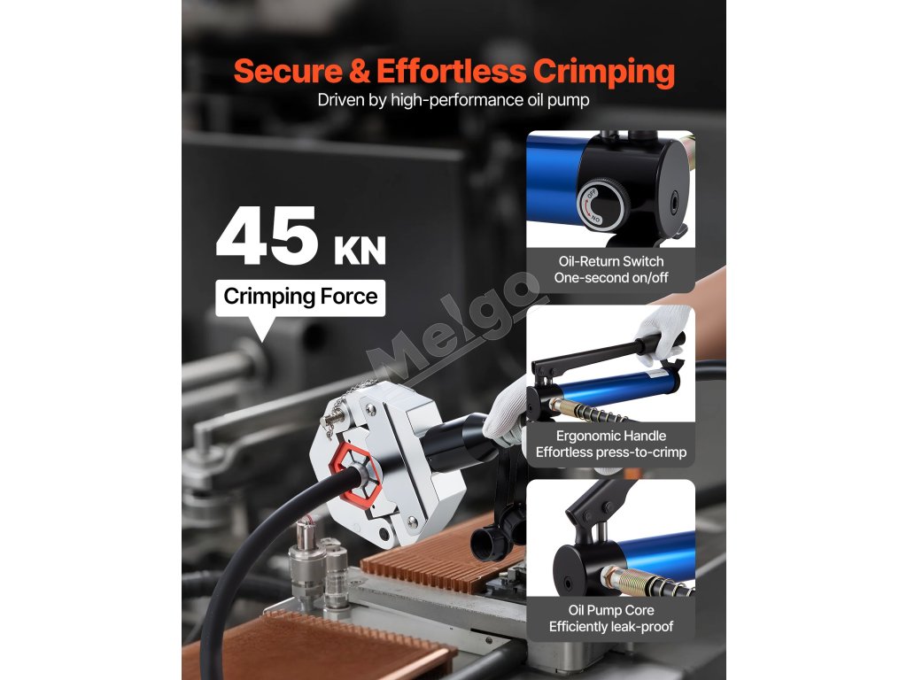 Tento hydraulický nástroj na lisovanie AC hadíc, vyrobený z vysokopevnostnej zinkovej zliatiny, vydrží vysoký pracovný tlak bez deformácie. Jeho konštrukcia odolná voči opotrebovaniu, korózii a hrdzi zaručuje dlhodobú spoľahlivosť.