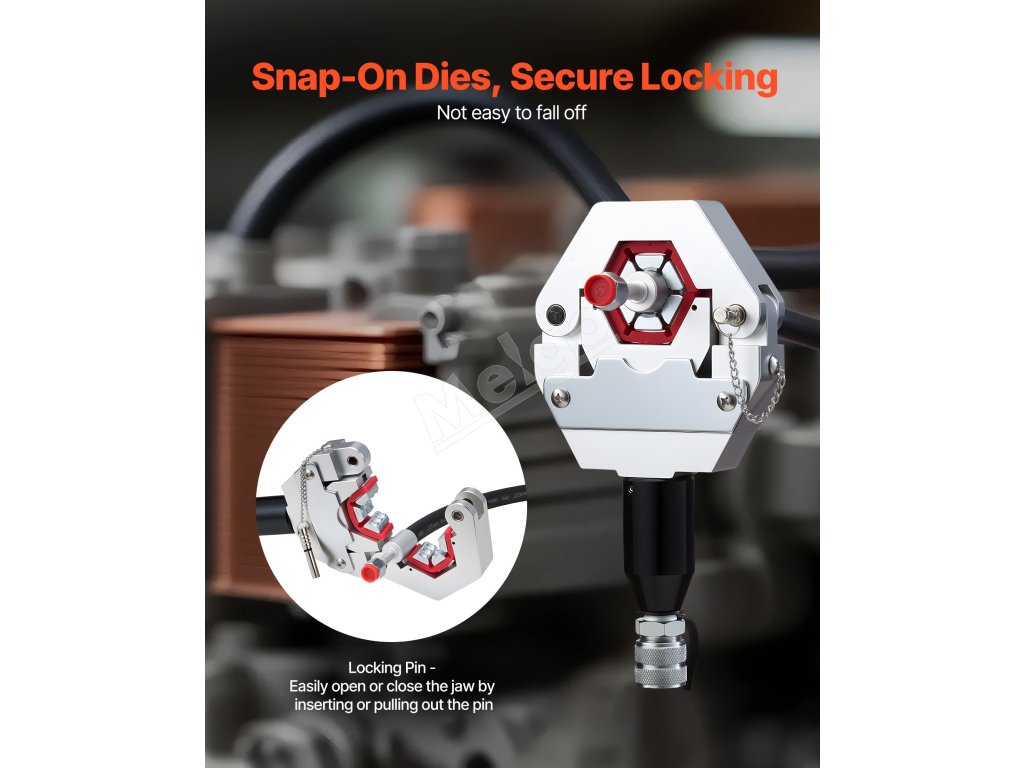 Zaklapávacia konštrukcia matrice umožňuje rýchlu inštaláciu bez použitia náradia a bezpečné pripevnenie k lisovaciemu prípravku, vďaka čomu môžete bez námahy meniť matrice a efektívne vykonávať lisovacie úlohy.