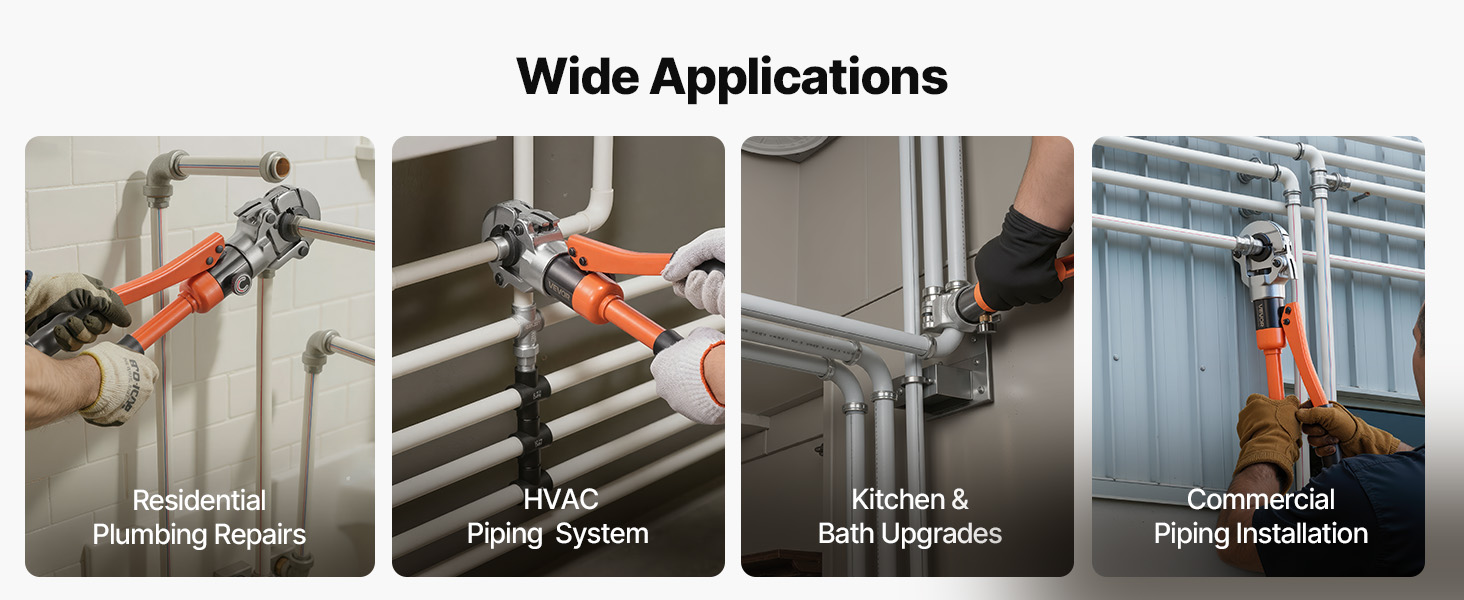 Ideálne na rôzne situácie pri inštalácii nových potrubí, rekonštrukciách alebo opravách, pričom poskytuje efektívne výsledky lisovania a spoľahlivé spoje potrubí.