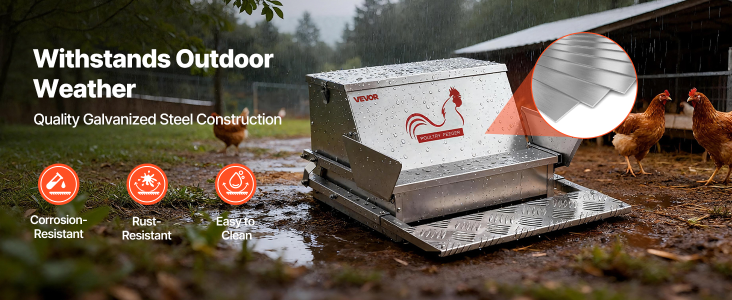 Tento automatický kŕmidlo pre kurčatá je vyrobené z kvalitnej pozinkovanej ocele a odoláva dlhodobému pôsobeniu vonkajších vplyvov bez hrdze alebo korózie. Hladký povrch sa ľahko čistí, čo zaručuje dlhú životnosť.