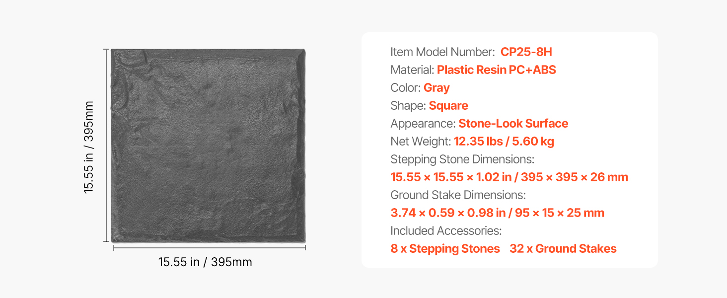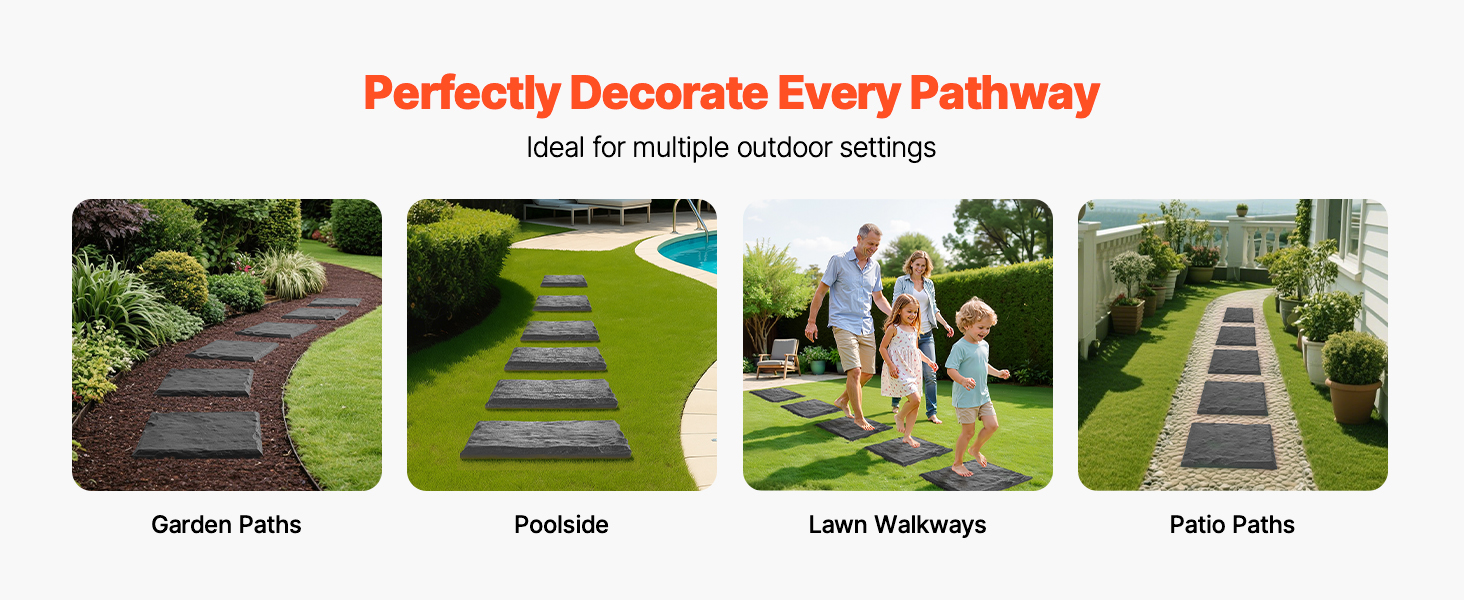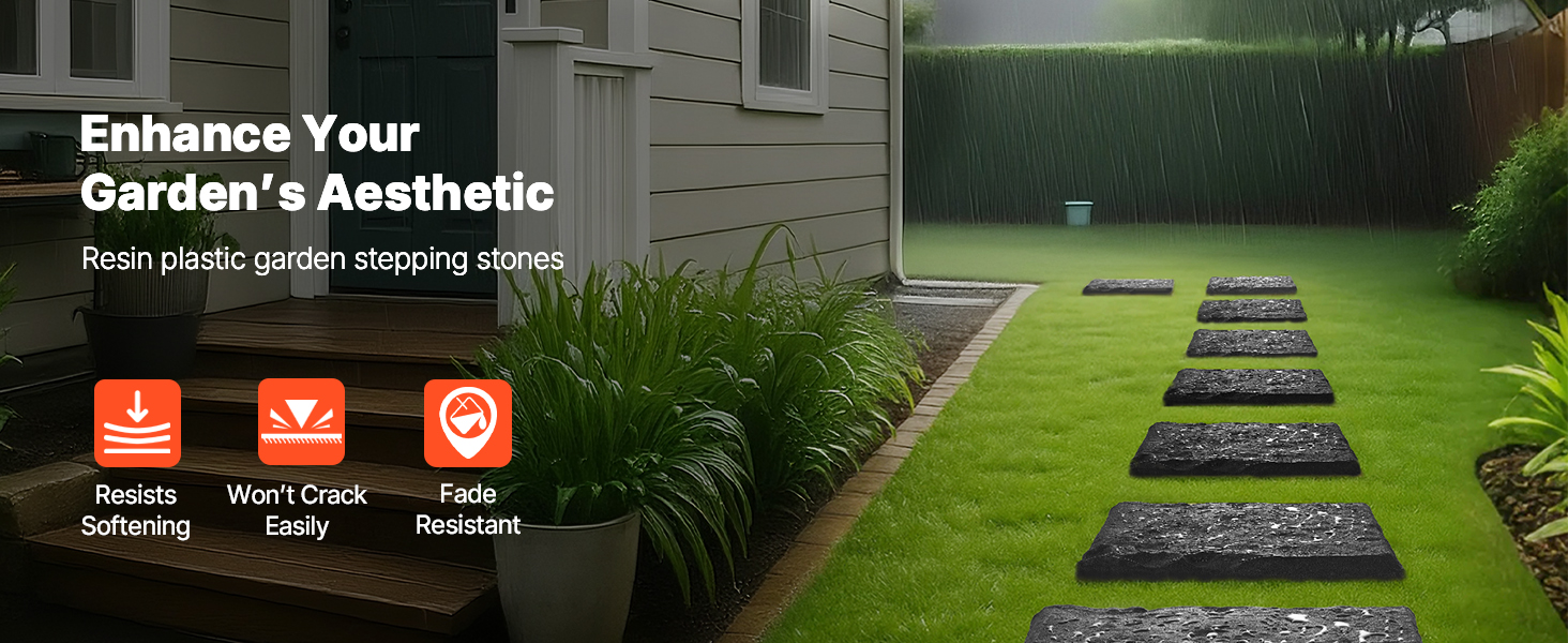 Tieto 8-dielne záhradné krokové kamene sú vyrobené z odolného PC a ABS plastu, ktorý odoláva slnku, dažďu a mrazu bez deformácie alebo vyblednutia. Každý krokový kameň obsahuje 4 zemné kolíky a vystuženú základňu pre extra stabilitu – ideálne pre domácnosti s deťmi a domácimi zvieratami.