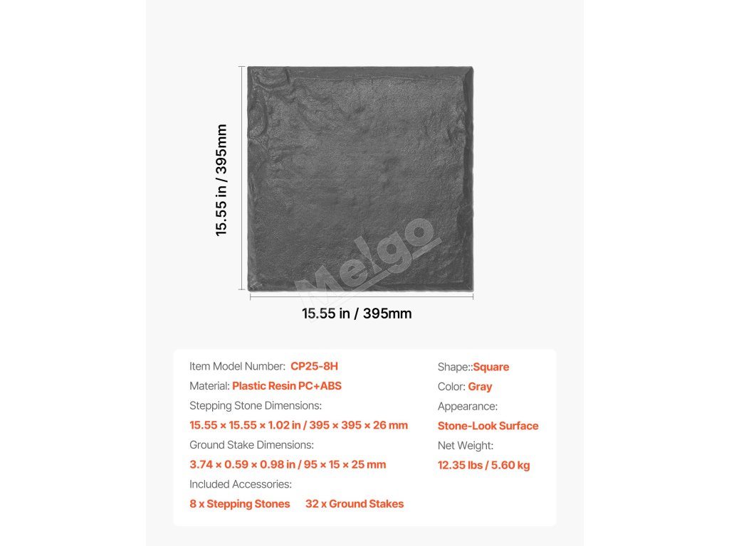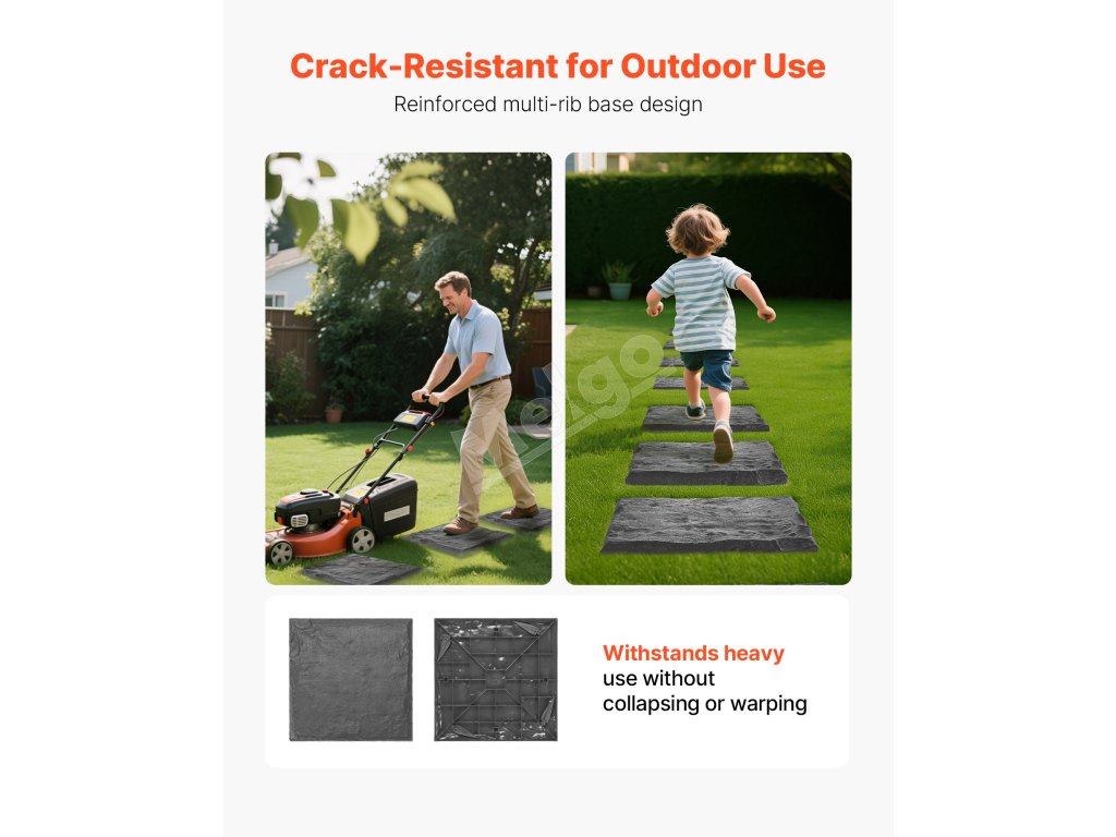 Tieto 8-dielne záhradné krokové kamene sú vyrobené z odolného PC a ABS plastu, ktorý odoláva slnku, dažďu a mrazu bez deformácie alebo vyblednutia. Každý krokový kameň obsahuje 4 zemné kolíky a vystuženú základňu pre extra stabilitu – ideálne pre domácnosti s deťmi a domácimi zvieratami.