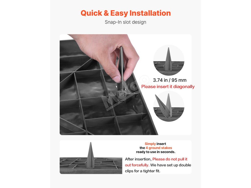 Každý záhradný kamienok obsahuje štyri 3,74-palcové (95 mm) zemné kolíky a vystuženú základňu pre väčšiu stabilitu. Navrhnuté tak, aby zostali pevne na mieste aj pod tlakom a za mokrých podmienok, čím sa zabráni posunutiu alebo pošmyknutiu a zabezpečí bezpečnejší vonkajší priestor.