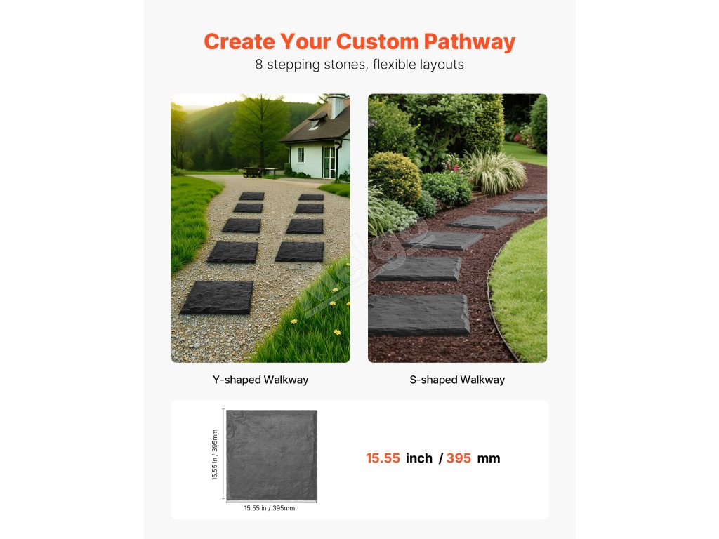 Súčasťou balenia je 8 krokových kameňov, ktoré sa hodia do rôznych usporiadaní. Nech už vytvárajte záhradnú cestičku, chodník pri bazéne, trávnatú cestičku alebo terasu, tieto krokové kamene vám pomôžu navrhnúť si vlastnú vonkajšiu cestičku v prírodnom štýle.