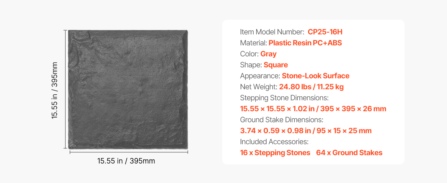 Dodáva sa so 16 nášľapnými kameňmi, ktoré vyhovujú rôznym usporiadaniam. Či už vytvárate záhradnú cestičku, chodník pri bazéne, trávnatý chodník alebo trasu na terasu, tieto nášľapné kamene vám pomôžu navrhnúť vlastný vonkajší chodník v prírodnom štýle.