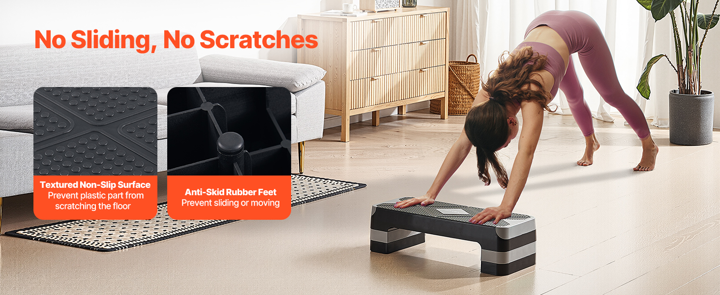 Textúrovaný protišmykový povrch a základňa pohlcujúca nárazy vás udrží na zemi. Protišmykové nožičky chránia podlahy a zároveň pevne fixujú na dlaždiciach, dreve alebo koberci.