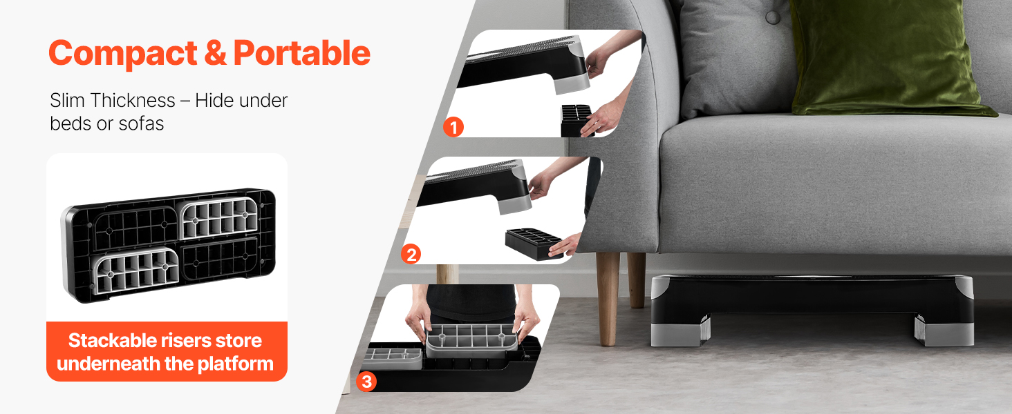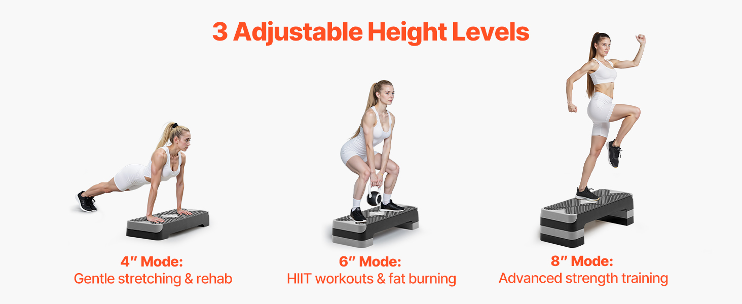 Trénujte inteligentnejšie so 4 in (rehabilitácia s nízkym dopadom), 6 in (spaľovanie tukov HIIT) alebo 8 in (skoky na budovanie svalov). Prepínajte úrovne v priebehu niekoľkých sekúnd, nepotrebujete žiadne náradie!