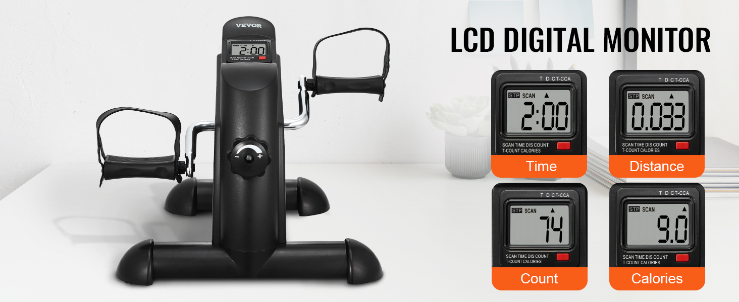 Zobrazuje čas, počet, kalórie a vzdialenosť (v metroch). Tento minibicykel na cvičenie obsahuje aj funkciu skenovania, ktorá postupne zobrazuje všetky merania, čo uľahčuje sledovanie vašej cesty k fitness.