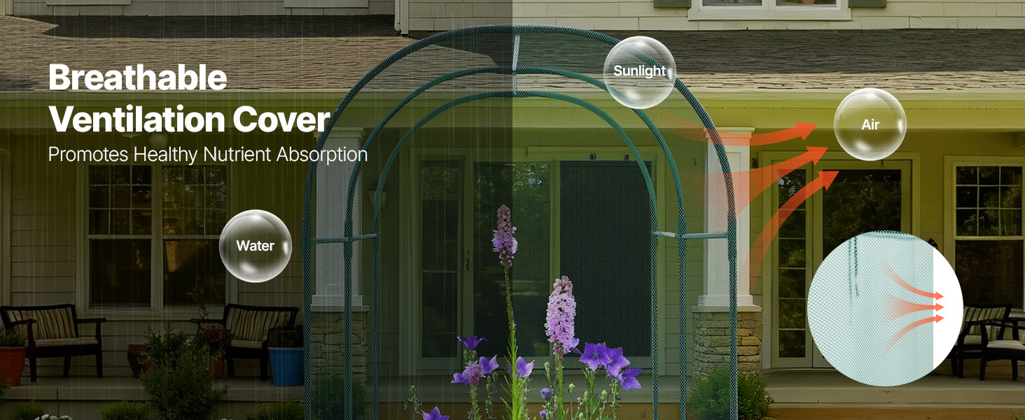 Priedušná sieťovina podporuje cirkuláciu vzduchu, vystavenie slnečnému žiareniu a prenikanie vody. Naša klietka na plodiny plne poskytuje živiny pre rastliny a vytvára ideálne podmienky pre ich bujný rast.