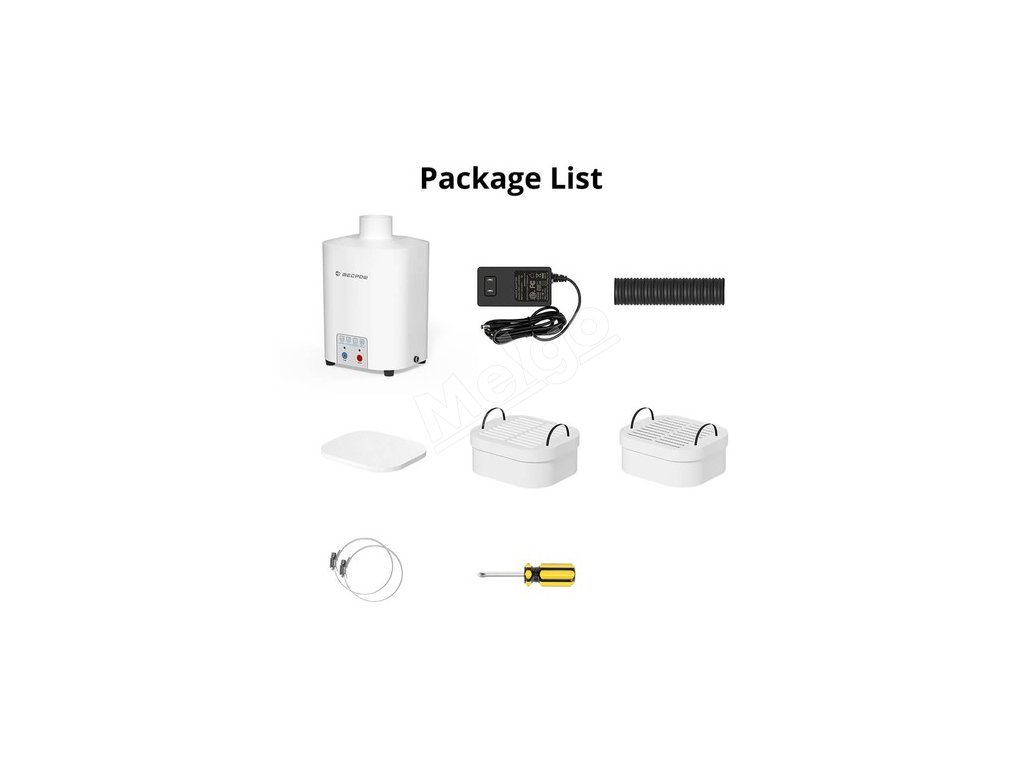 Obsah balenia: | 1 x napájací kábel, 1 x Skrutkovač, 5 x predfilter, 1 x stredný HEPA filter, 1 x filter s aktívnym uhlím, 1 x Výfukové potrubie, 1 x P50 Odsávač pár, 2 x Hrdlová obruč |