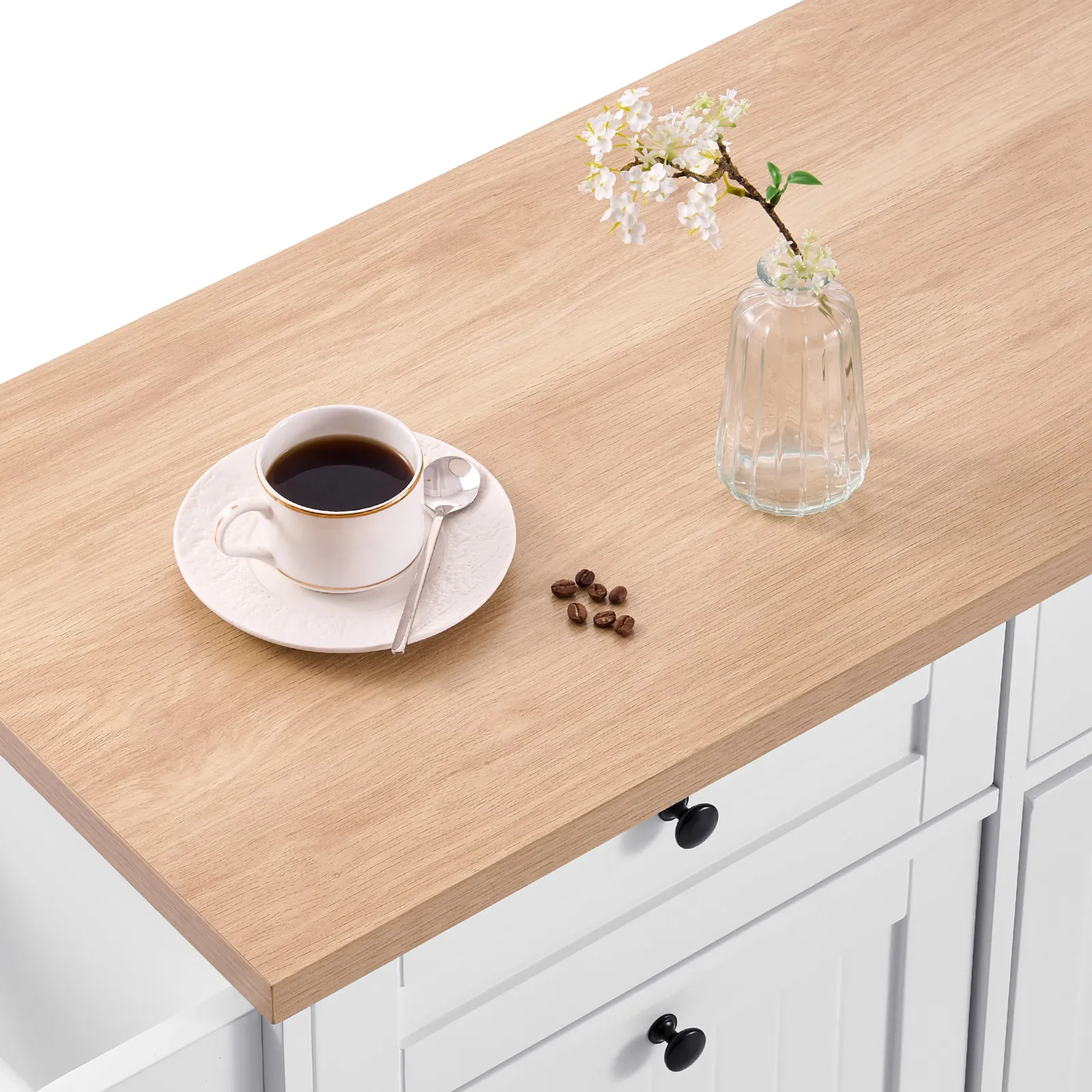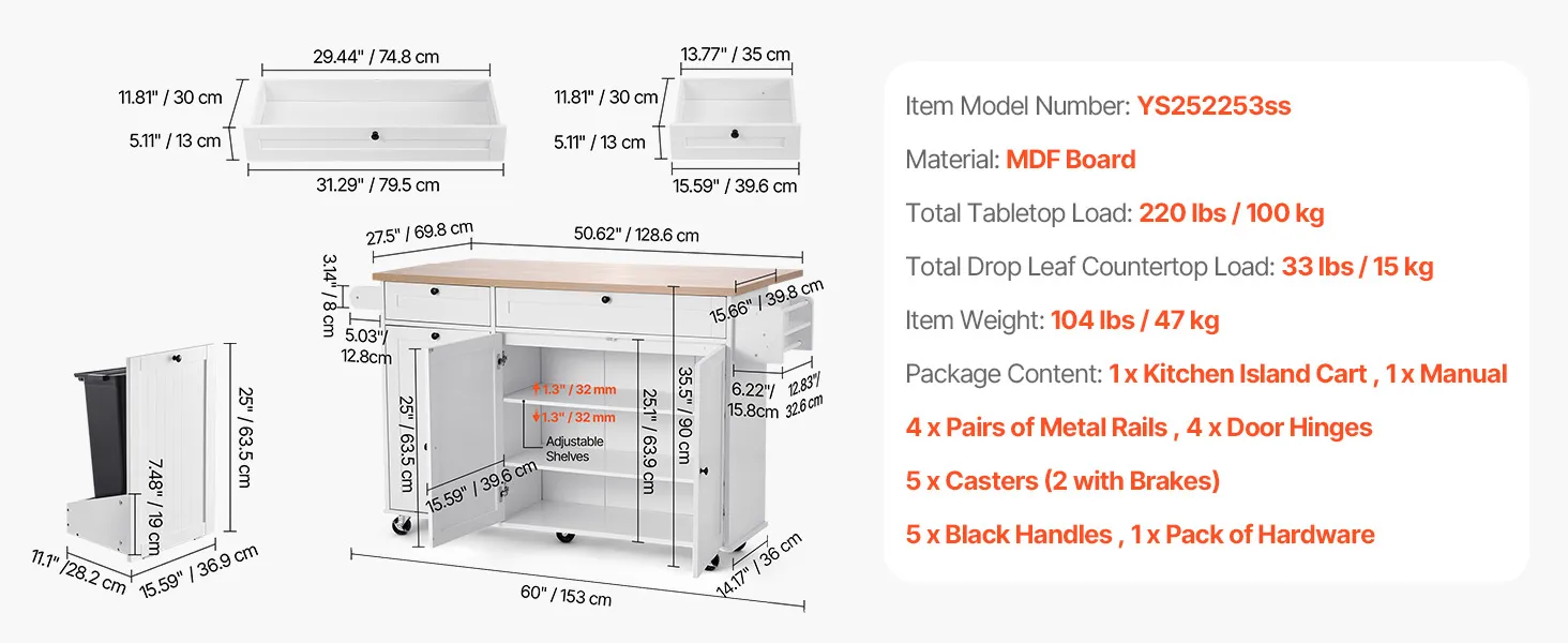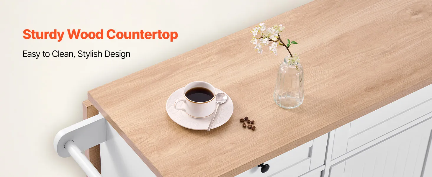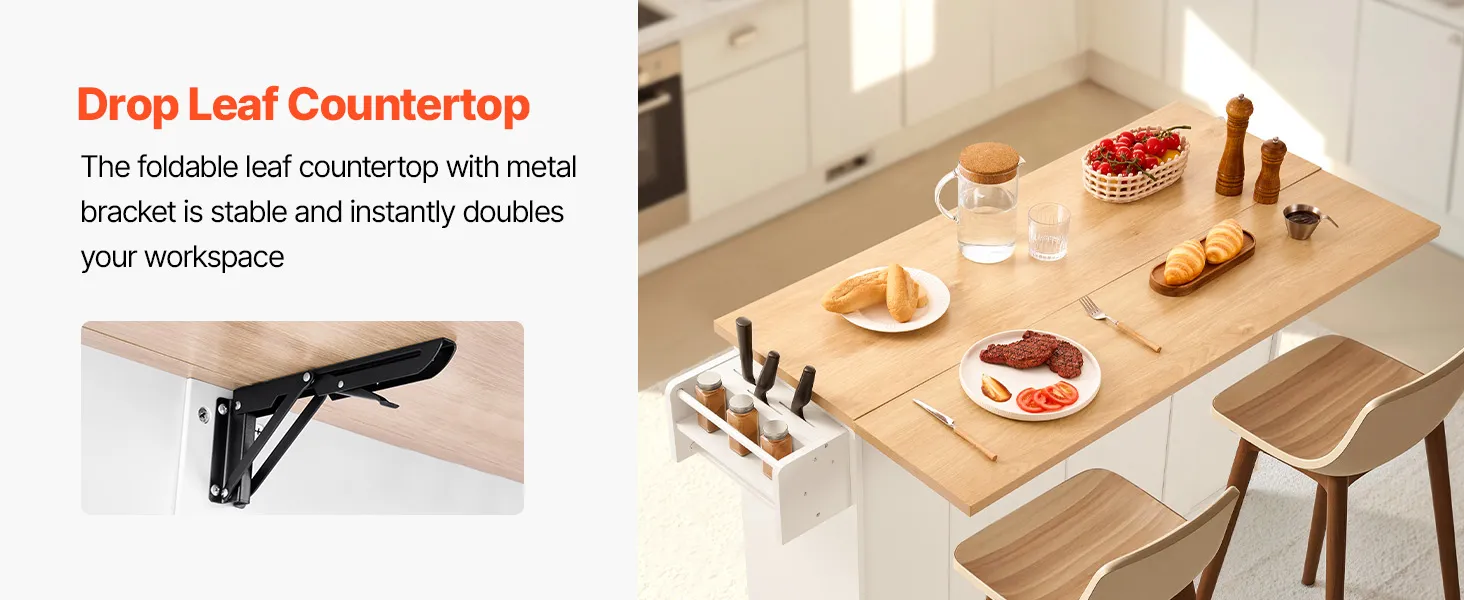 Tento všestranný ostrov kombinuje regály, police a skrinky na jednoduché usporiadanie kuchynského riadu, náčinia a základných vecí v špajze. Hladko sa pohybujúce kolieska sa bez námahy posúvajú po podlahe a umožňujú vám premiestniť zariadenie z kuchynskej linky do jedálne alebo dokonca na vonkajšie grilovanie.