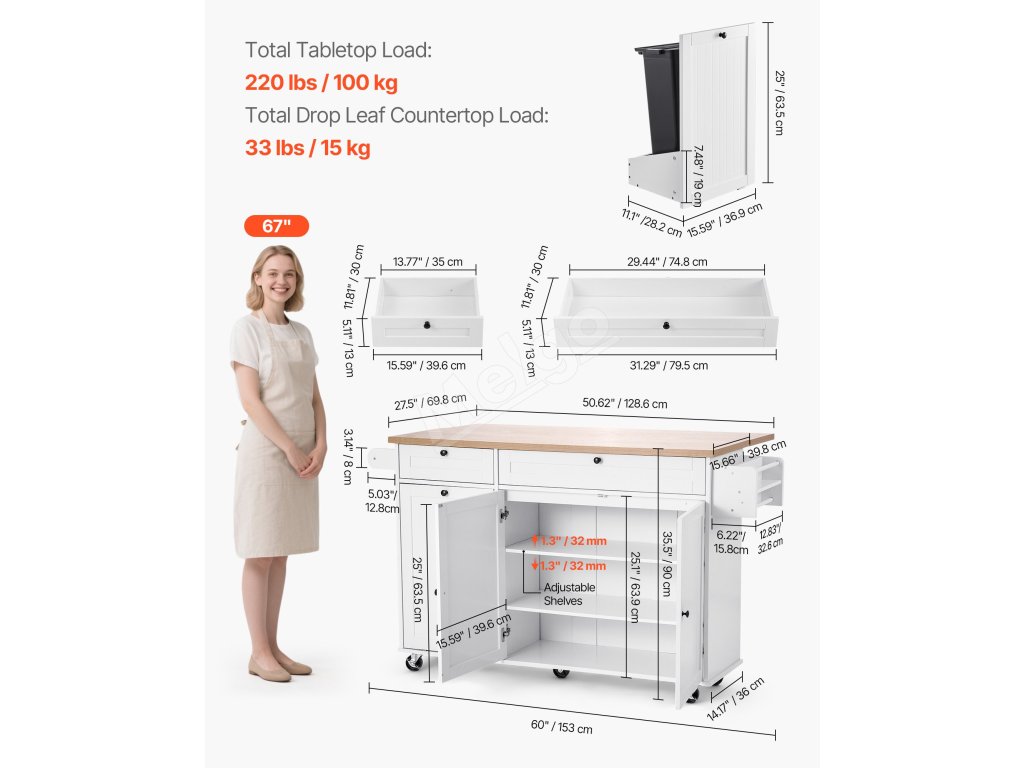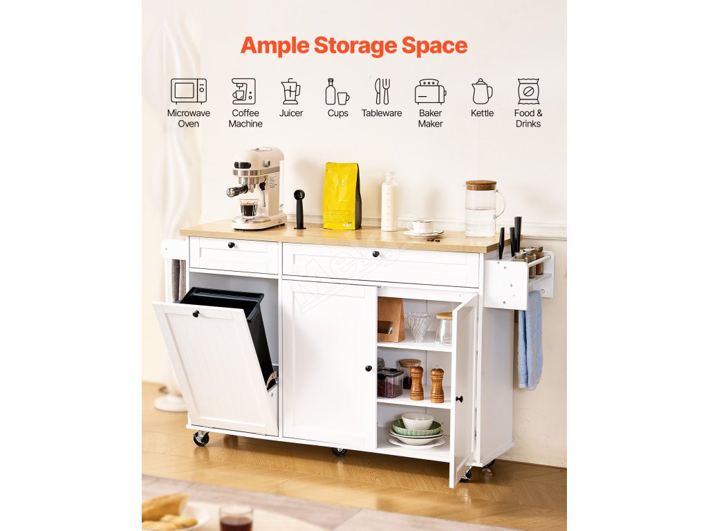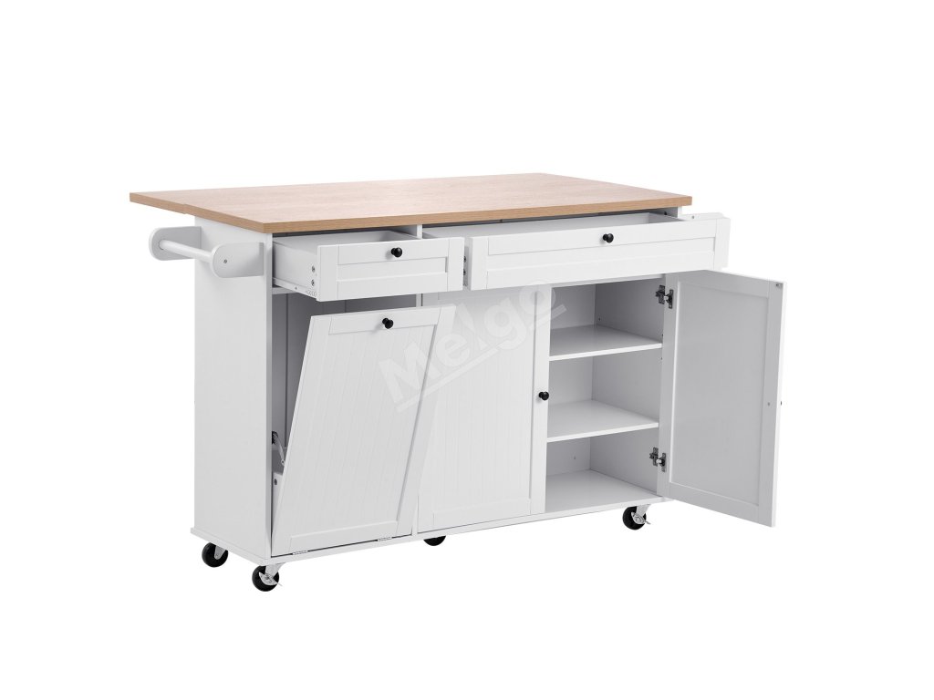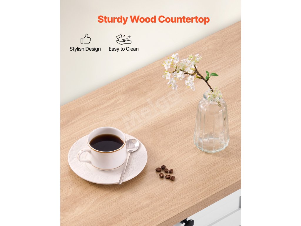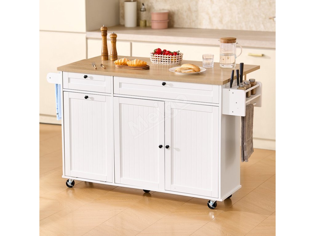Tento všestranný ostrov kombinuje regály, police a skrinky na jednoduché usporiadanie kuchynského riadu, náčinia a základných vecí v špajze. Hladko sa pohybujúce kolieska sa bez námahy posúvajú po podlahe a umožňujú vám premiestniť zariadenie z kuchynskej linky do jedálne alebo dokonca na vonkajšie grilovanie.