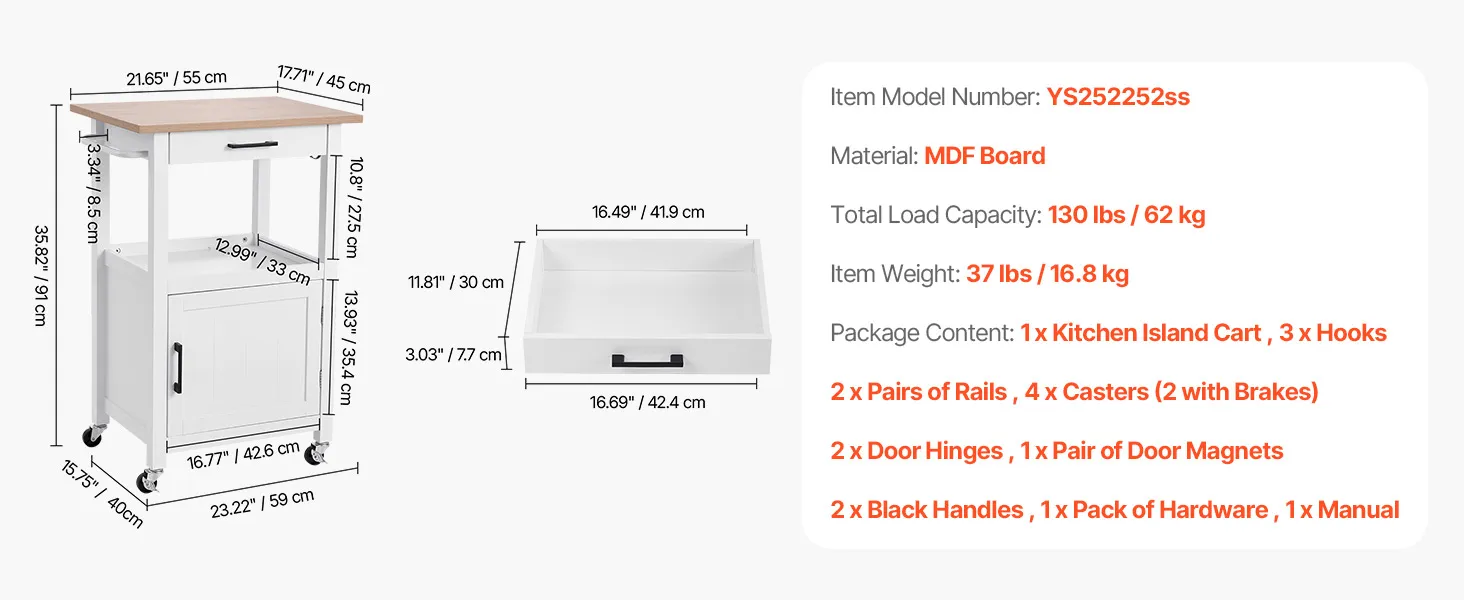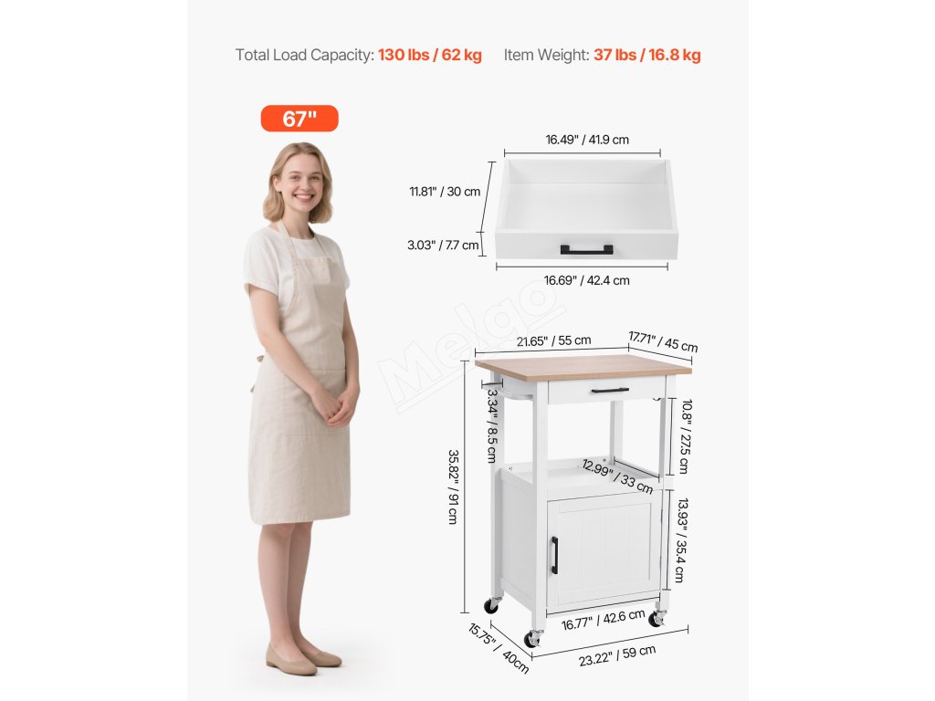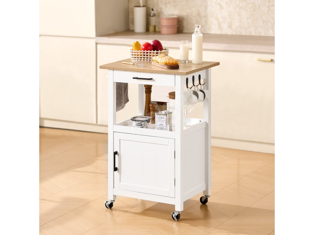 Kuchynský vozík na kolieskach s dvierkami a zásuvkou, 45×59cm