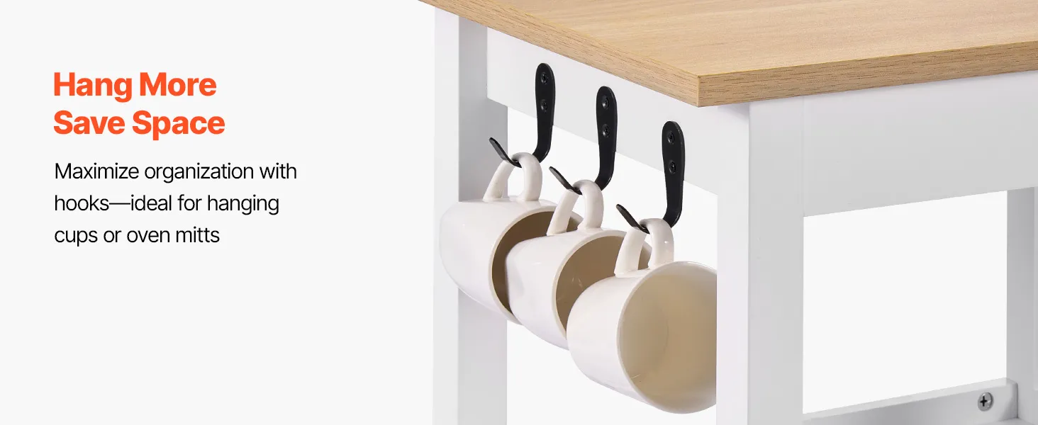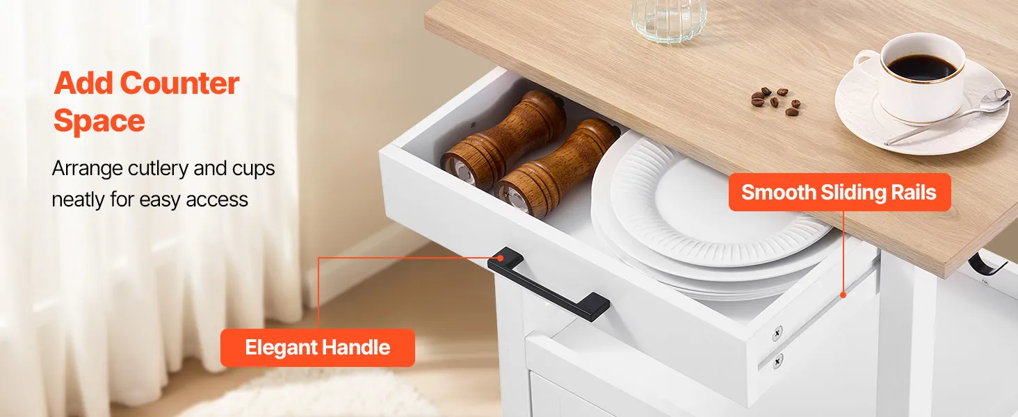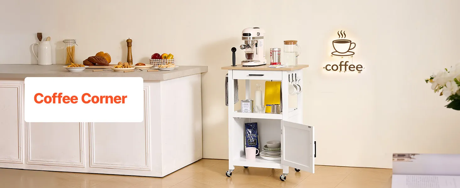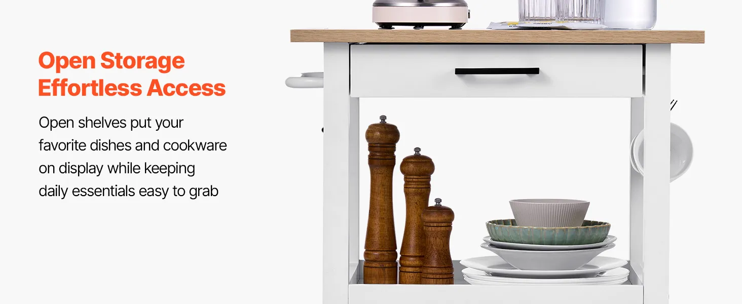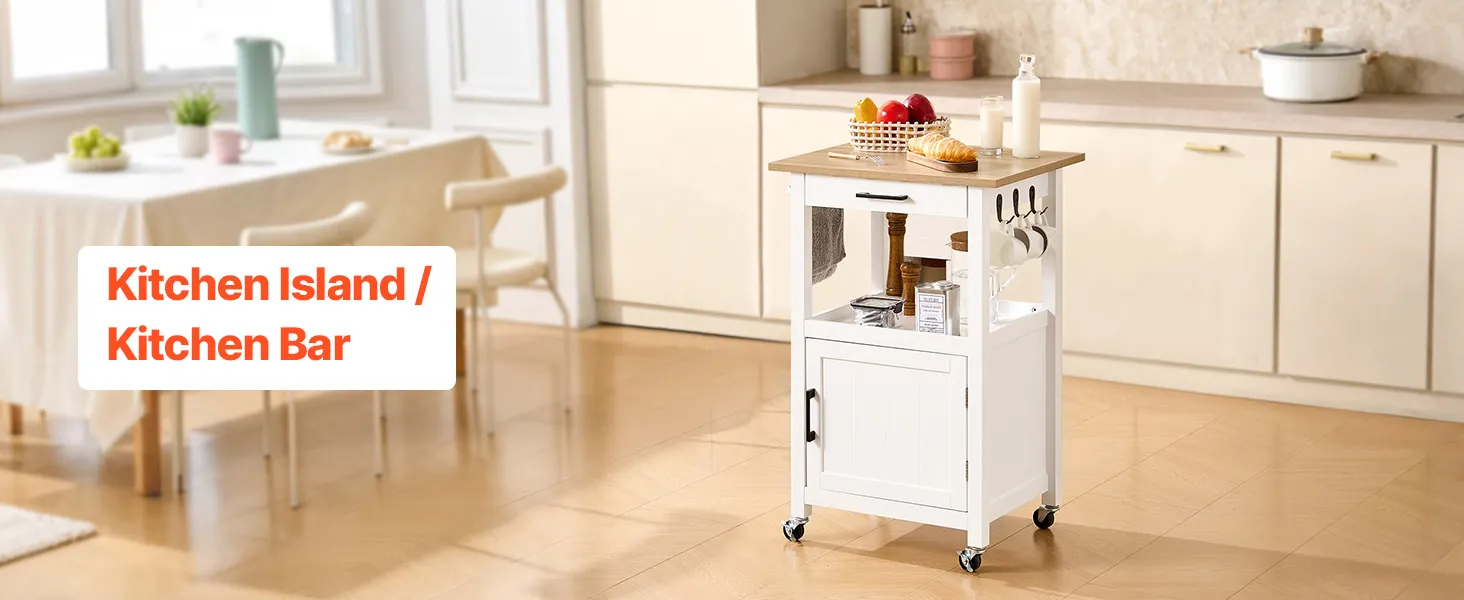 Tento všestranný ostrov kombinuje regály, police a skrinky na jednoduché usporiadanie kuchynského riadu, náčinia a základných vecí v špajze. Hladko sa pohybujúce kolieska sa bez námahy posúvajú po podlahe a umožňujú vám premiestniť zariadenie z kuchynskej linky do jedálne alebo dokonca na vonkajšie grilovanie.