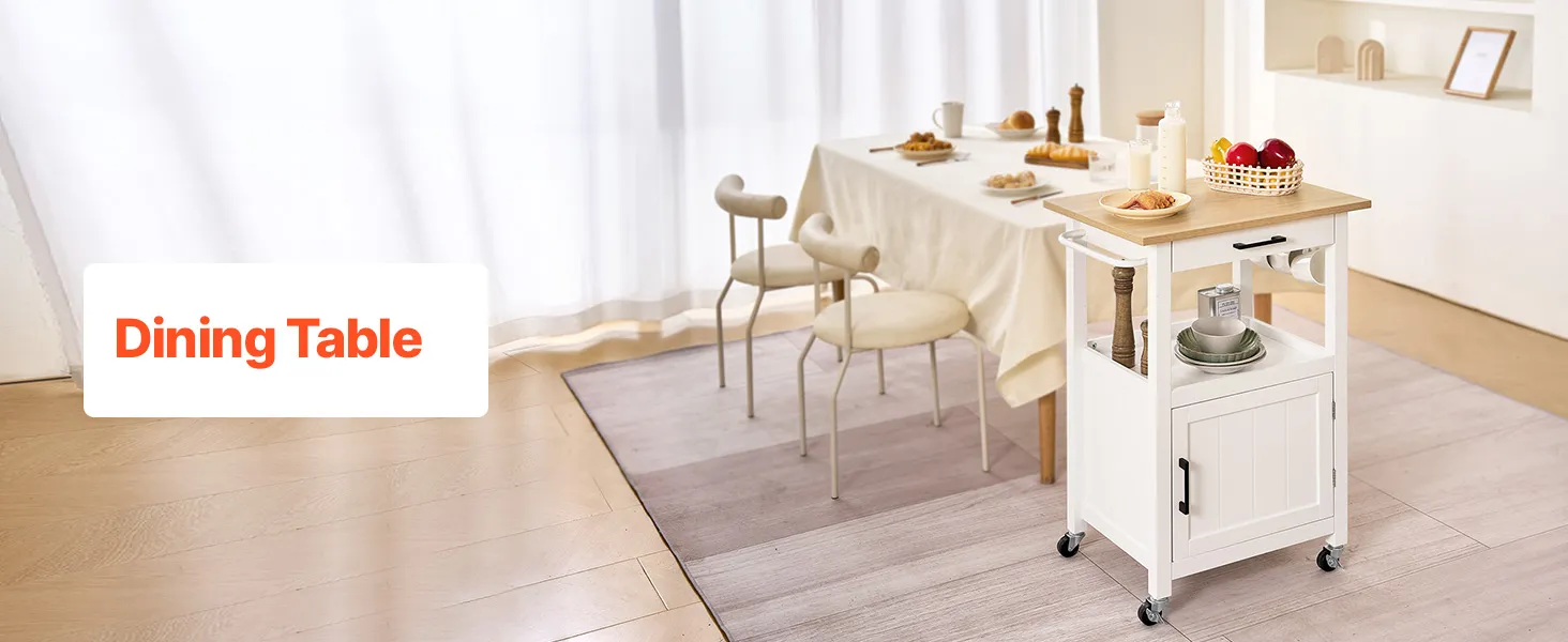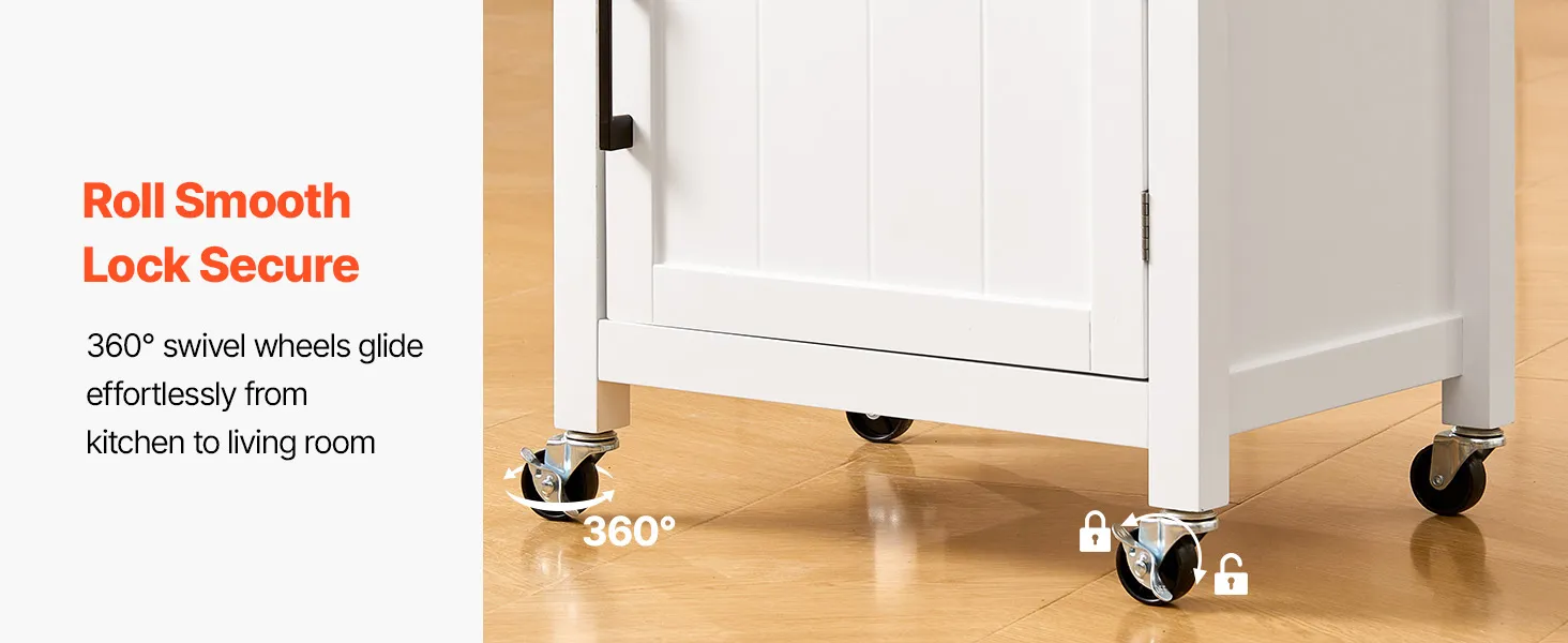 Náš kuchynský úložný ostrovček vlastní uzamykateľné kolieska, ktoré umožňujú plynulú zmenu polohy a bezpečné umiestnenie, čím sa prispôsobí dynamickému usporiadaniu kuchyne a zároveň si zachová stabilitu počas používania.